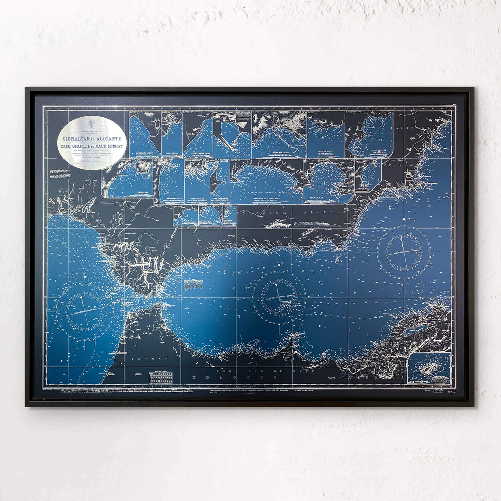 Tableau vintage Gibraltar et Cap Spartel (Maroc) jusqu'à Cap Ferrat - Aluminium