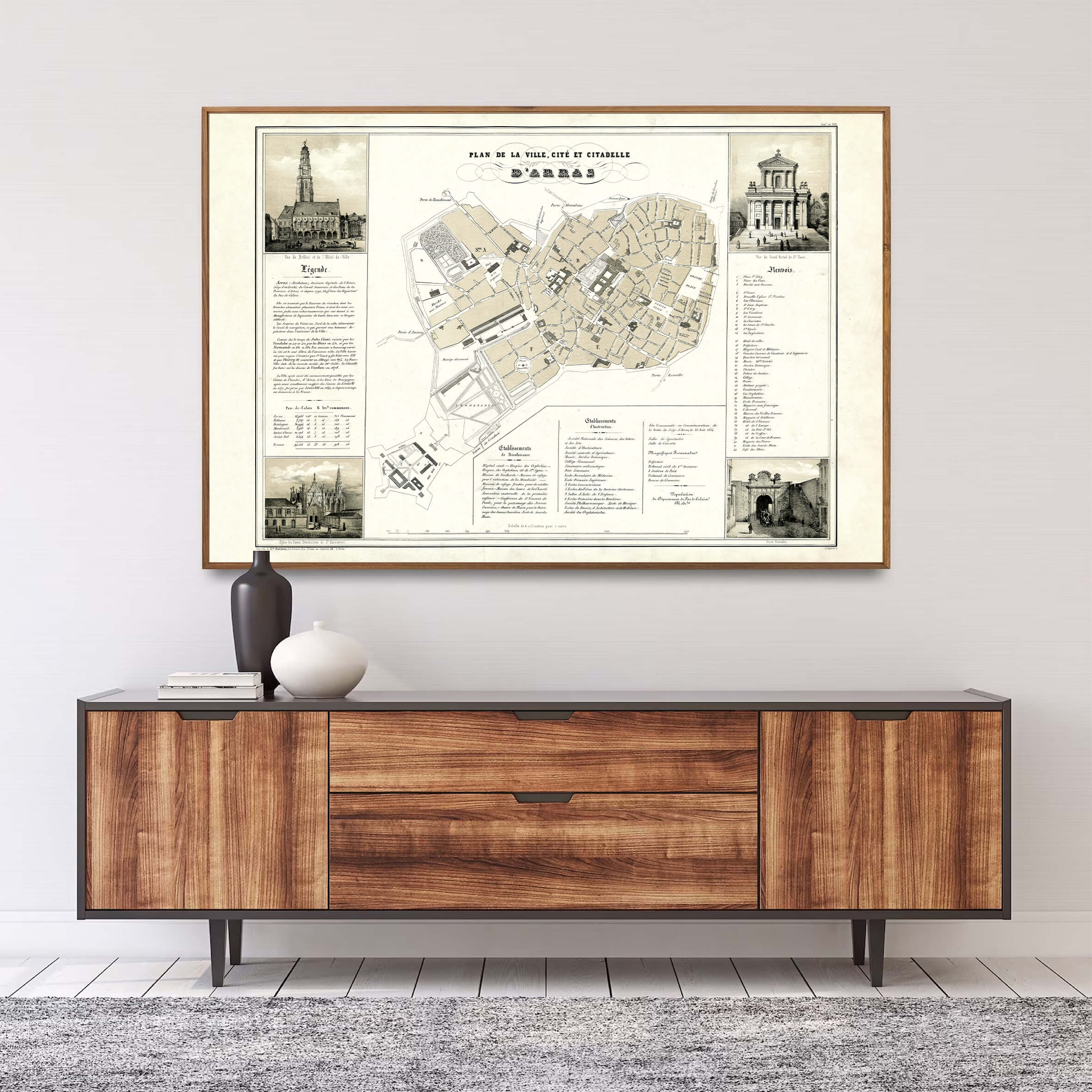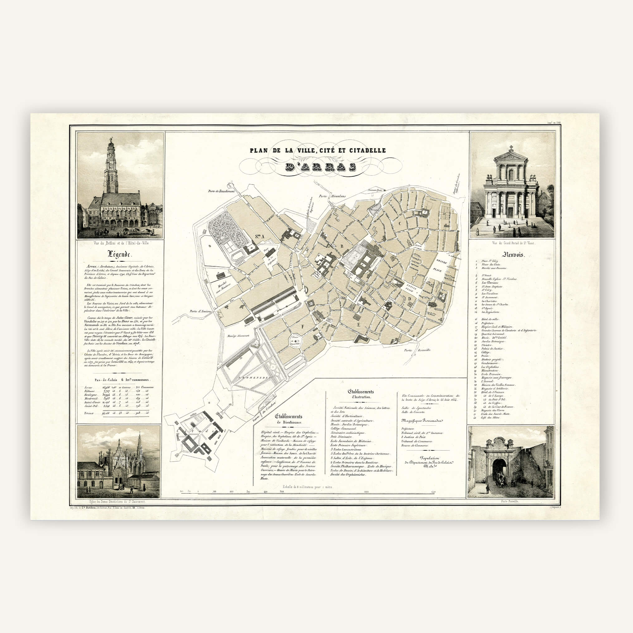 Cette carte d'Arras de 1849 offre une représentation précise et minutieuse de la ville et de ses alentours. Elle illustre les rues, les bâtiments, les infrastructures, ainsi que les caractéristiques naturelles avec une grande attention aux détails. Chaque élément est soigneusement tracé, permettant de visualiser Arras telle qu'elle était il y a plus de 170 ans.