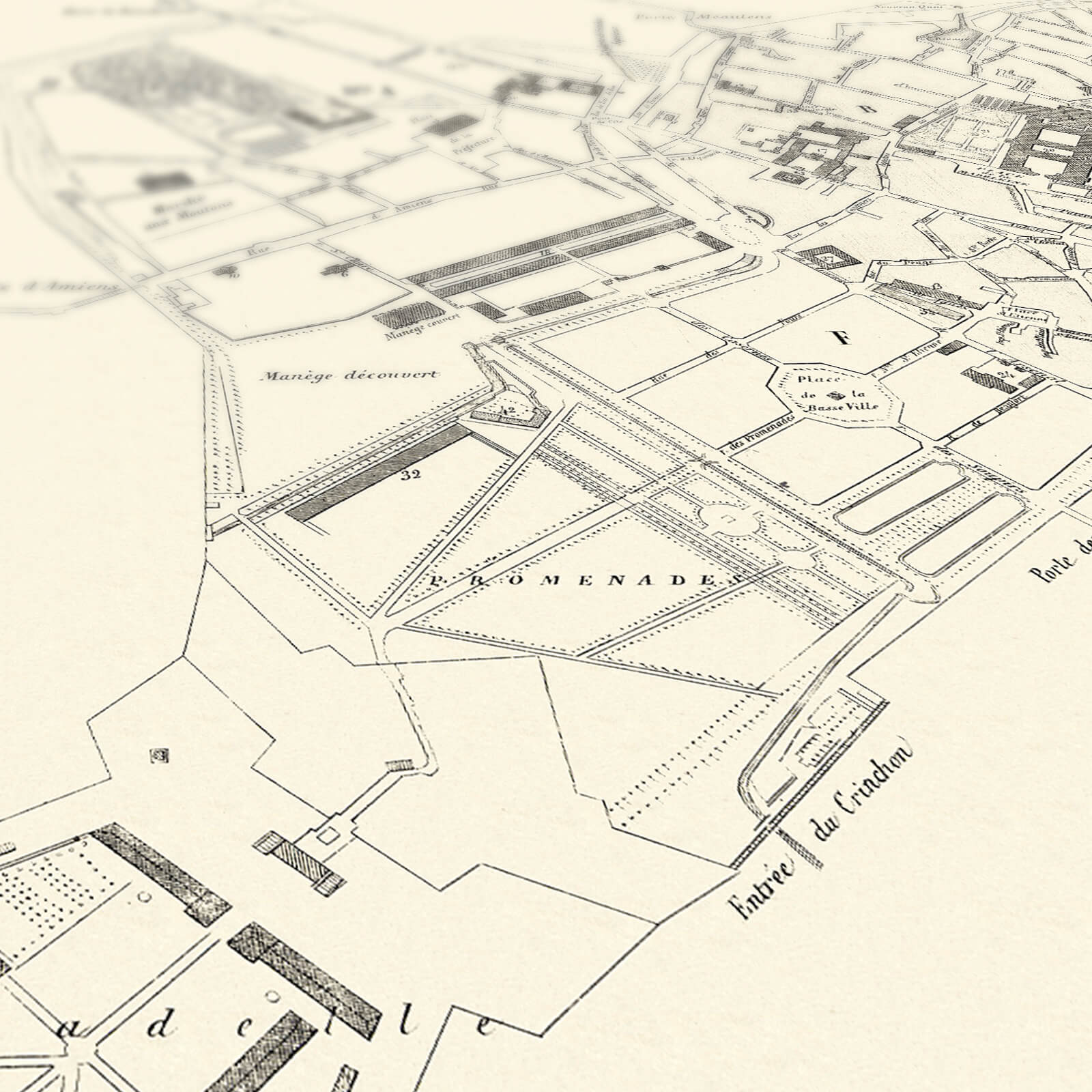 Plongez dans l'histoire fascinante d'Arras avec cette carte géographique datant du XIXème siècle. Cet artefact exceptionnel est bien plus qu'un simple document cartographique : il est une véritable œuvre d'art et un témoignage vivant du passé, capturant les détails et les paysages de la ville et de ses environs tels qu'ils étaient à cette époque.