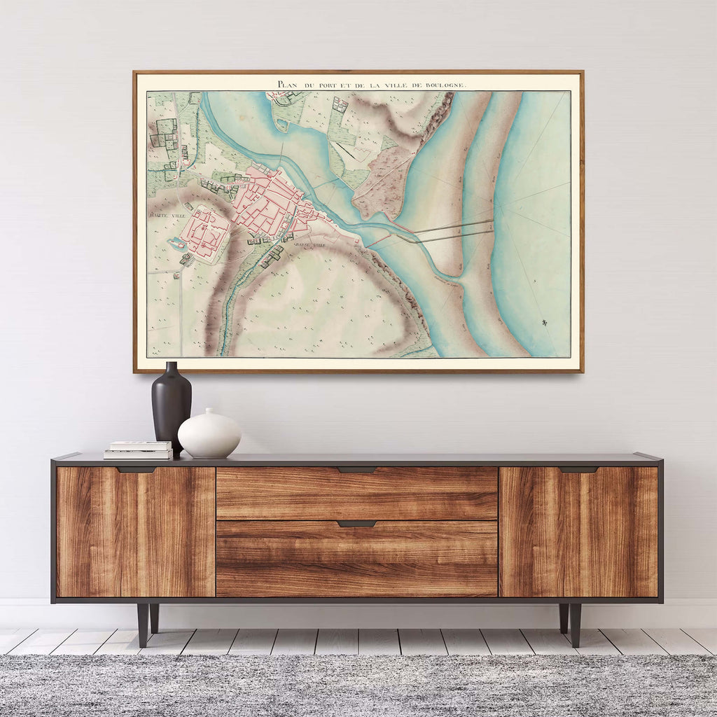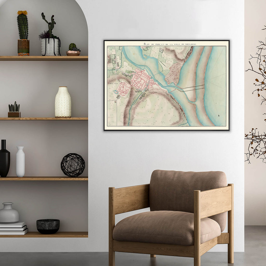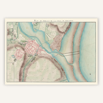 Cette carte géographique de Boulogne de 1778 est une représentation détaillée et minutieuse de la ville et de ses environs tels qu'ils étaient à la fin du XVIIIe siècle. Elle illustre les routes, les bâtiments, les zones boisées et les caractéristiques naturelles de la région avec une finesse incroyable. Chaque détail est soigneusement dessiné, offrant un aperçu fascinant de la ville telle qu'elle était il y a plus de deux siècles.