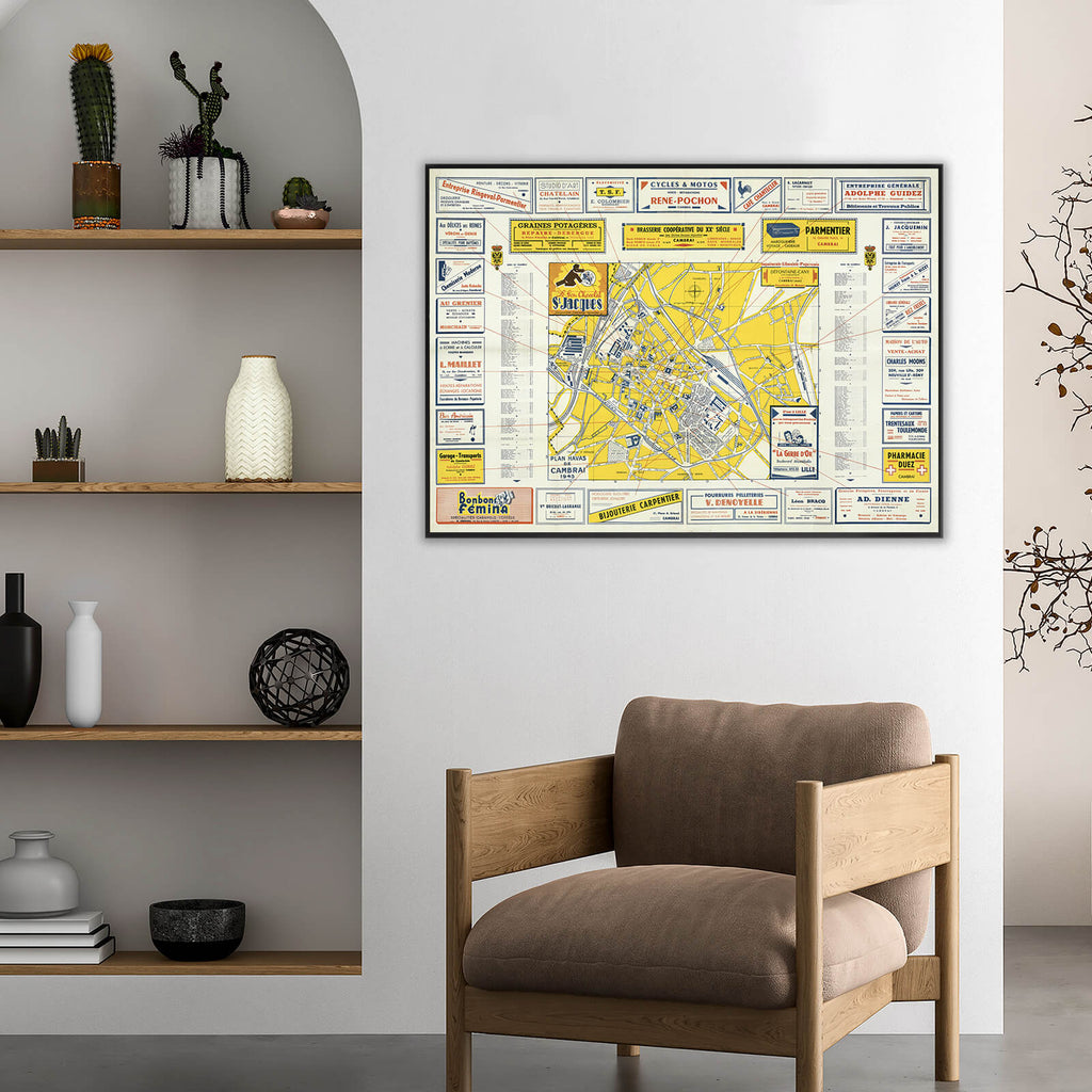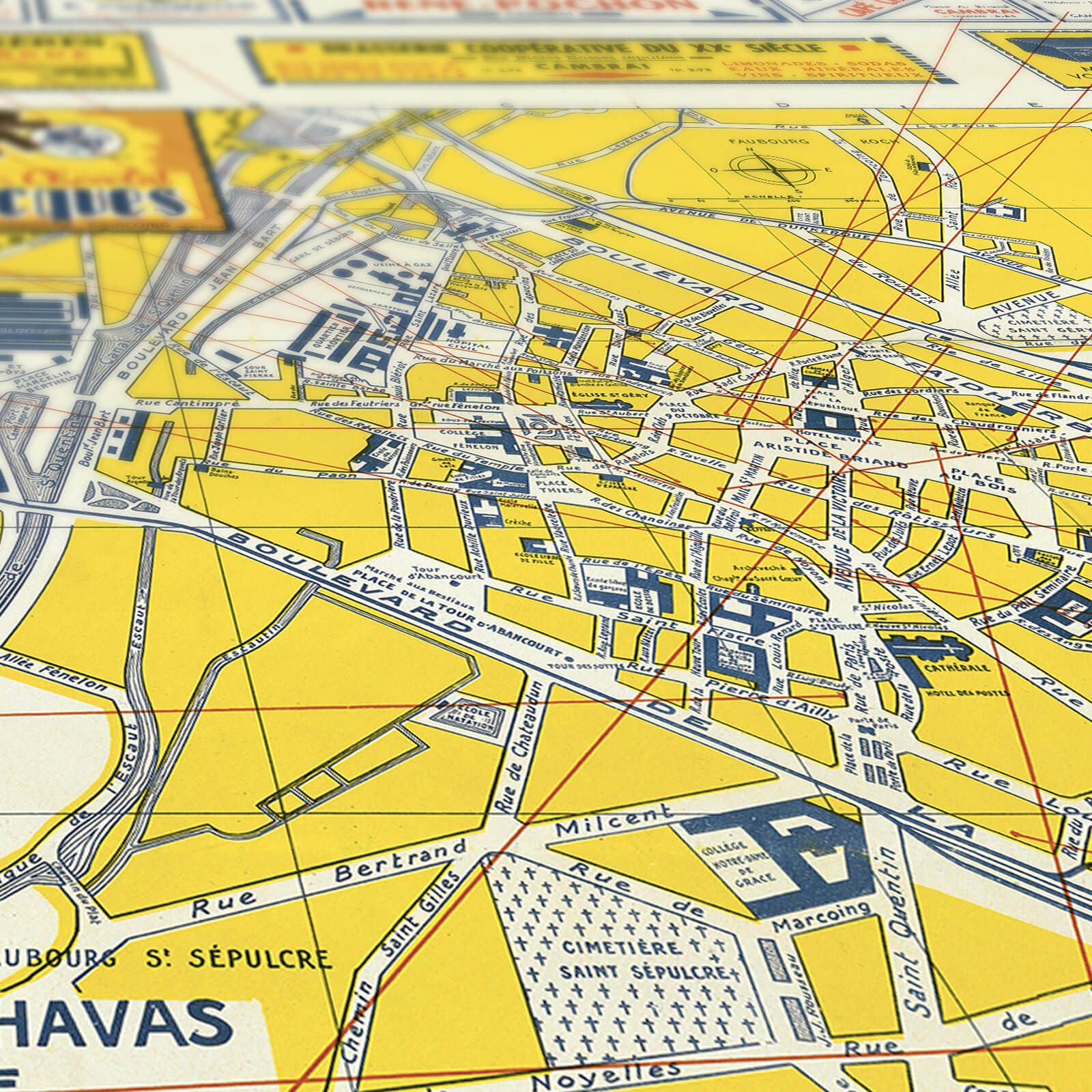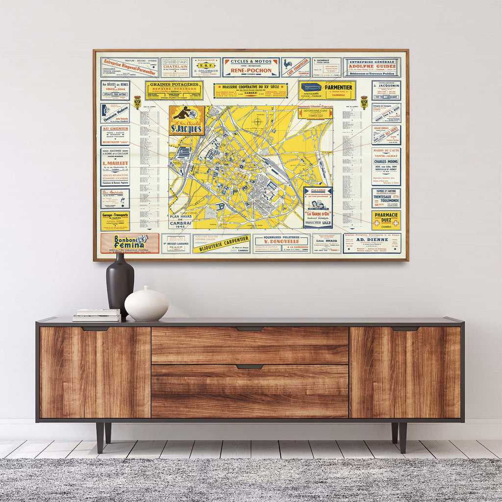 Explorez un chapitre fascinant de l'histoire avec cette carte géographique de Cambrai datant de 1945. Ce document exceptionnel, réalisé à la fin de la Seconde Guerre mondiale, offre une vue détaillée et précise de la ville et de ses environs, capturant les transformations et les aspects uniques de cette période cruciale.