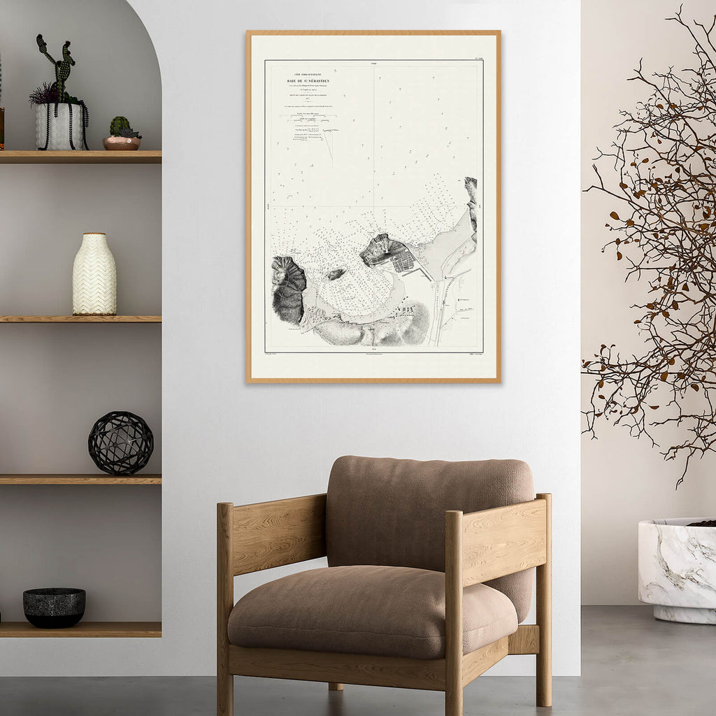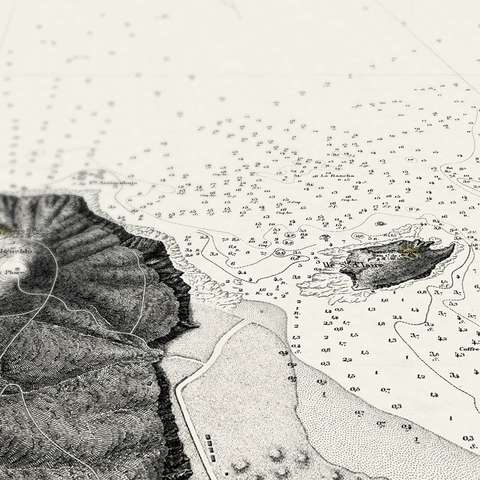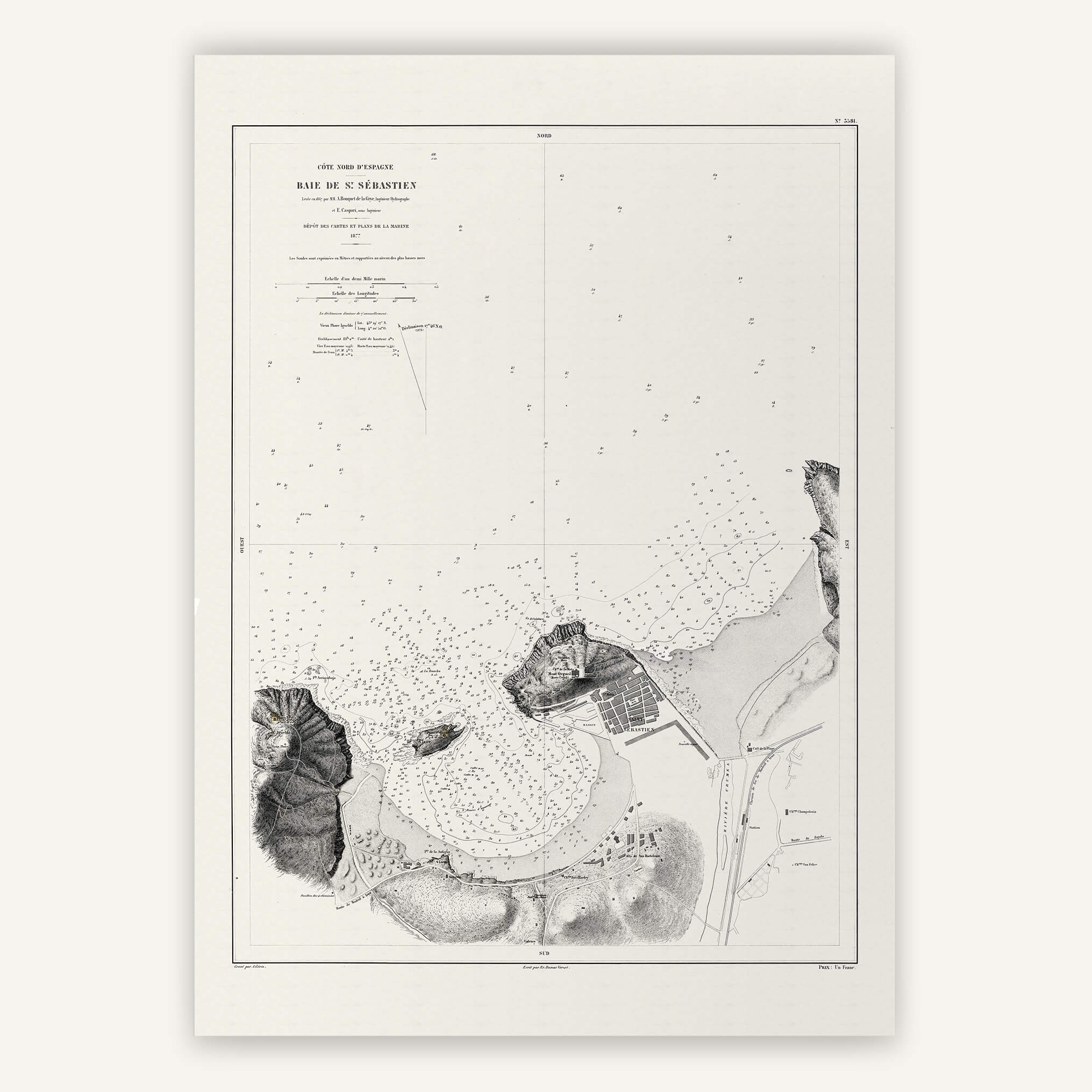 En 1877, cette carte géographique détaillée de la Baie de Saint-Sébastien capturait les contours envoûtants de cette région côtière emblématique du Pays-basque espagnol. Dessinée avec une minutie artisanale, cette carte révèle les reliefs tourmentés des montagnes qui se jettent dans les eaux de la baie.