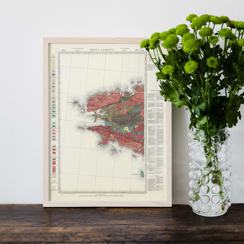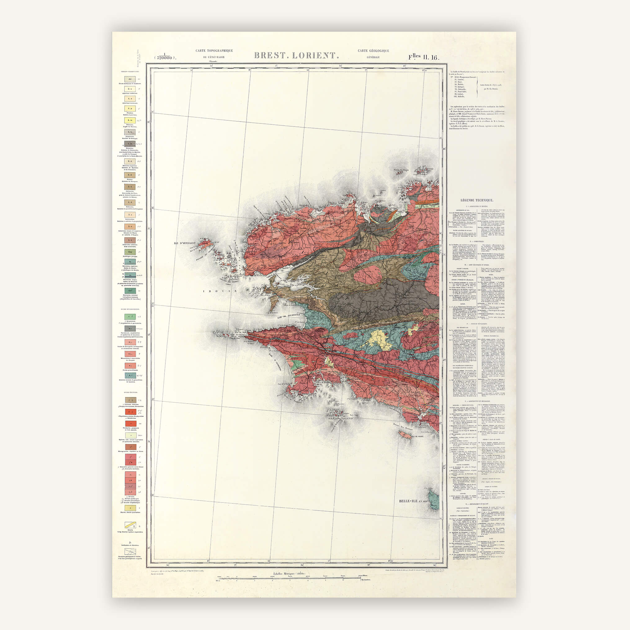 Affiche vintage Finistère, Morbihan Géologique et Topographique 1943