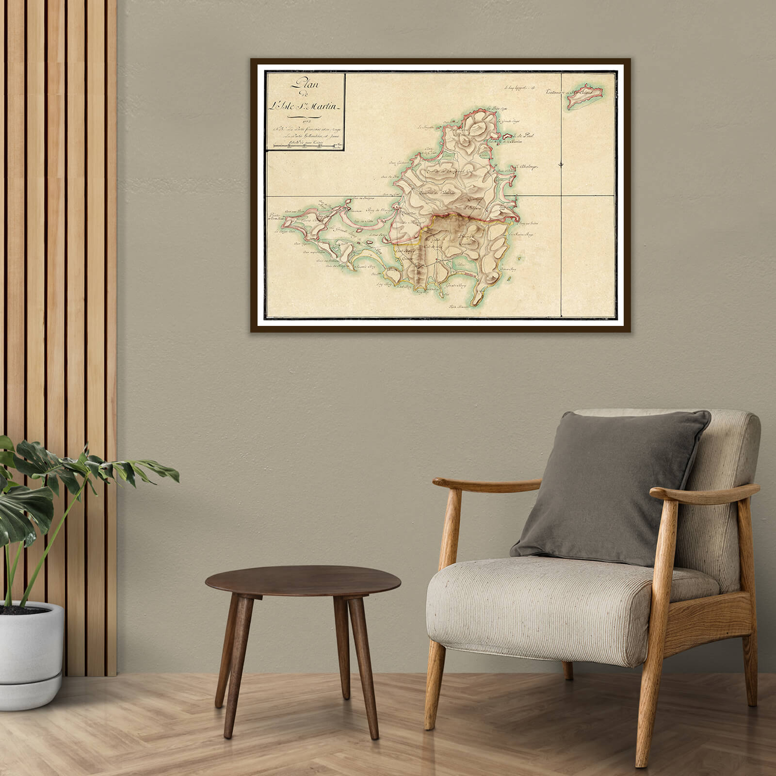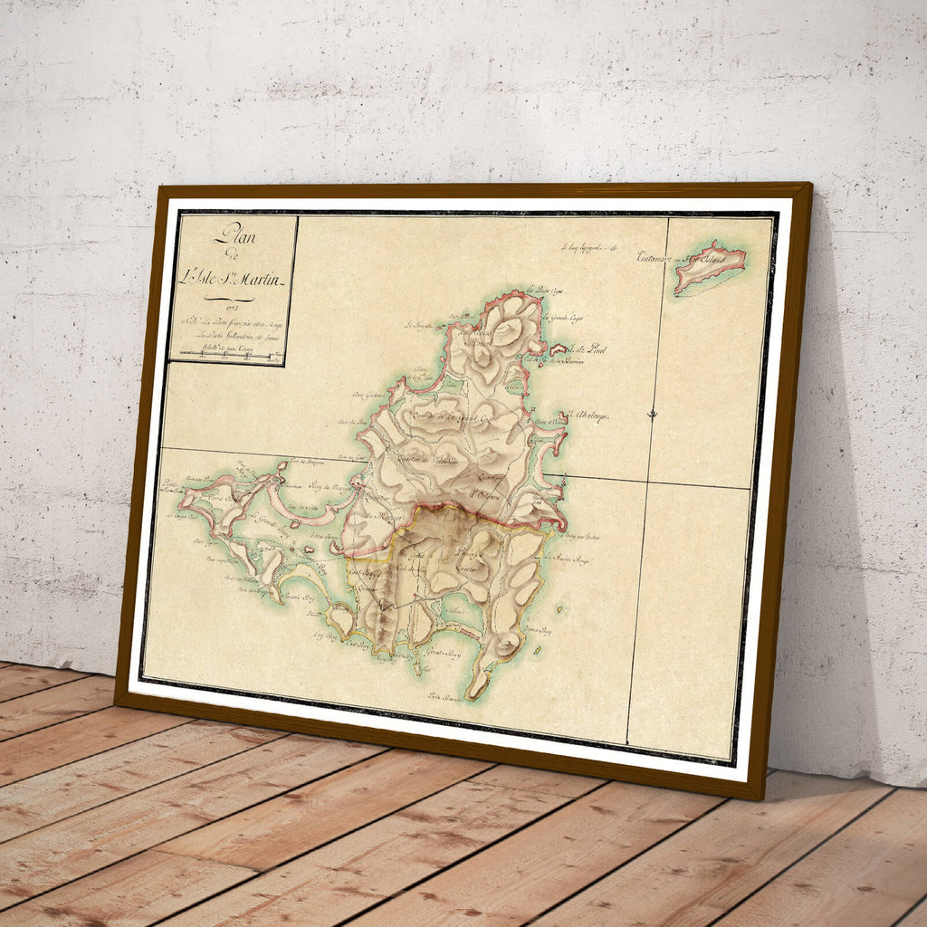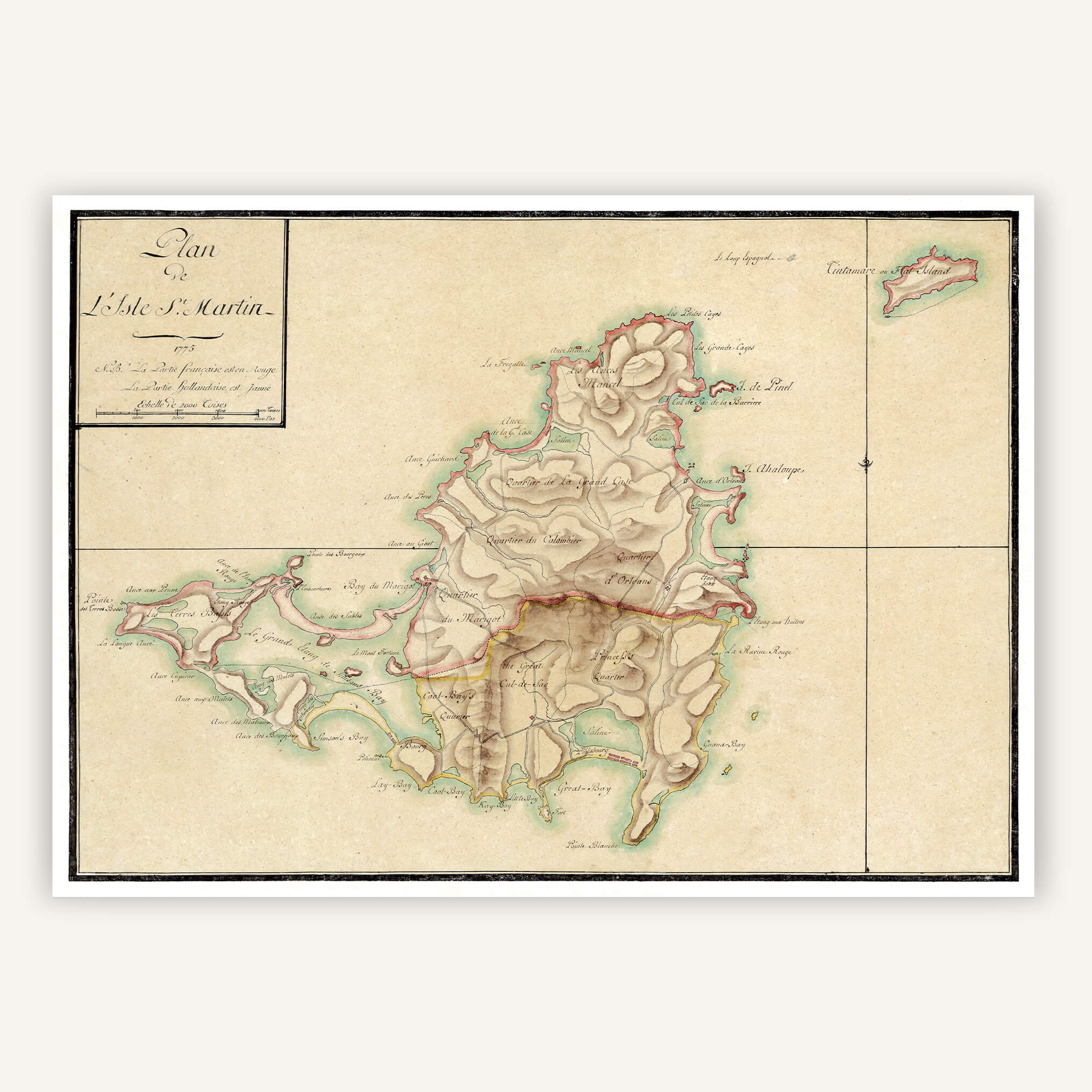 Offrez-vous cette invitation à explorer les merveilles naturelles et les trésors cachés de l'île de Saint-Martin en 1775, et laissez-vous transporter dans un voyage visuel à travers les siècles, au cœur d'une des destinations les plus enchanteresses des Caraïbes.