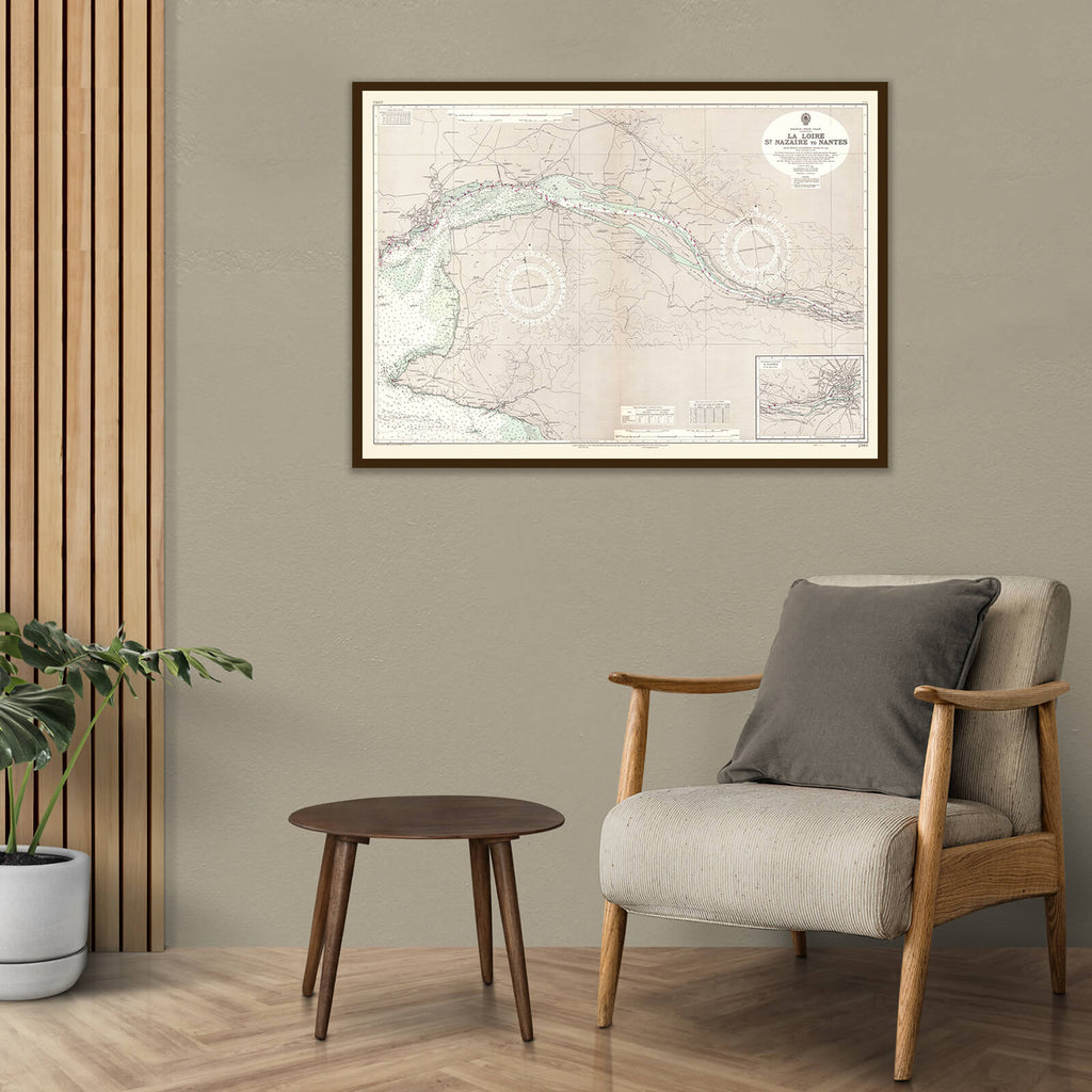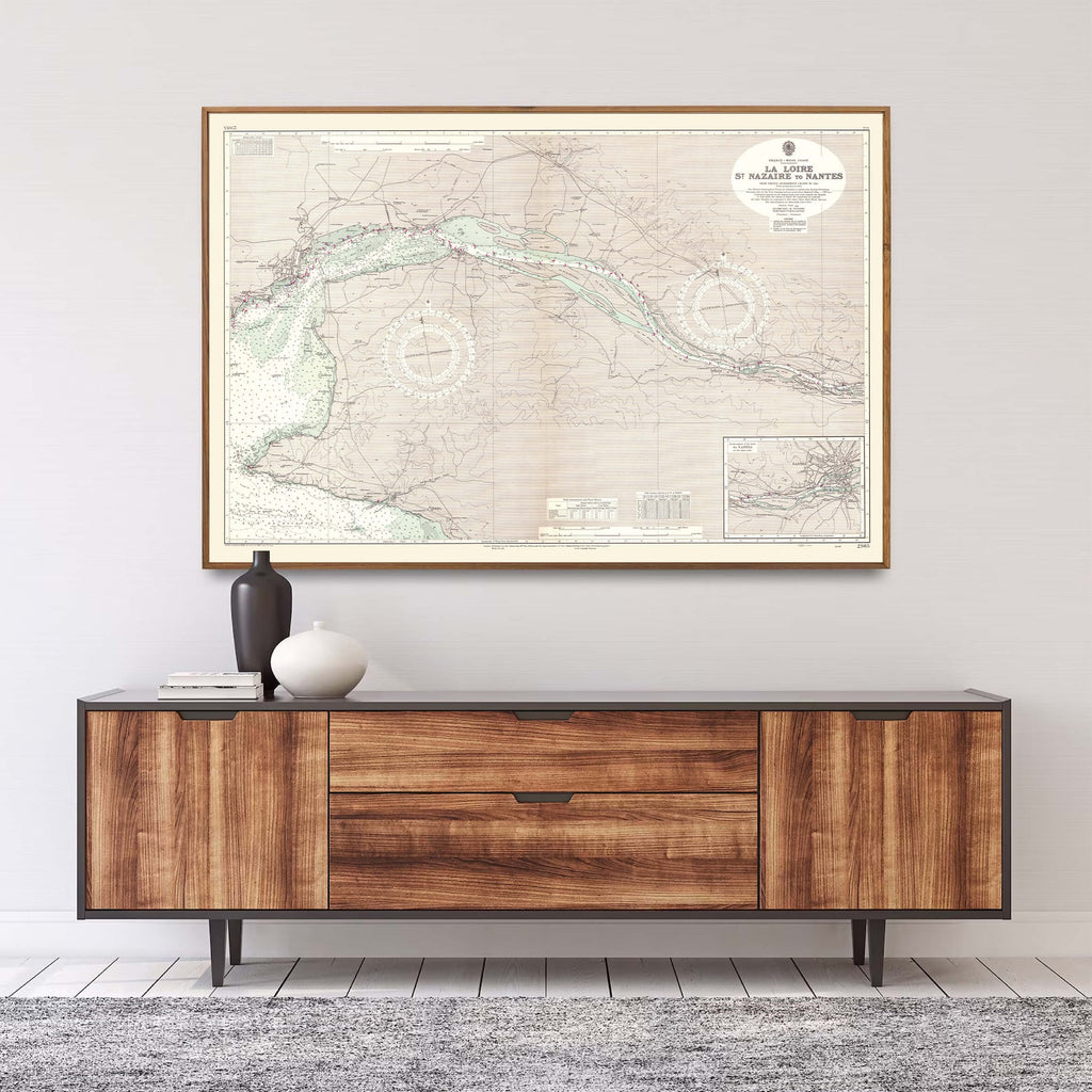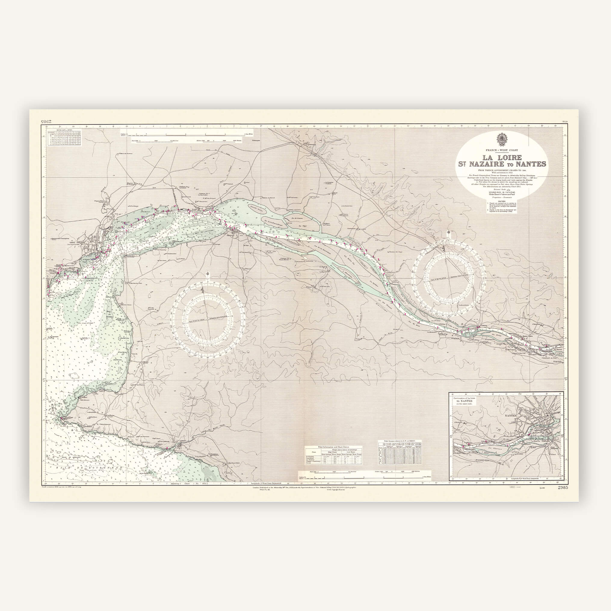 Découvrez le fleuve de la Loire s'étendant de la ville de Saint-Nazaire à Nantes sur cette affiche géographique particulière aux couleurs douces et aux traits précis !