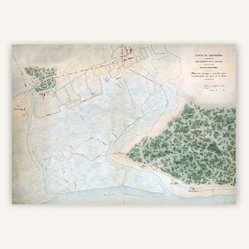 Cette carte témoigne de l’importance stratégique de La Teste-de-Buch à l’époque, notamment en ce qui concerne ses accès au bassin et ses zones portuaires. Réalisée par les services de Ponts et Chaussées, elle met en lumière les projets d’aménagement liés aux travaux maritimes et offre un aperçu rare de la structuration territoriale d’une commune aujourd’hui emblématique de la côte atlantique.