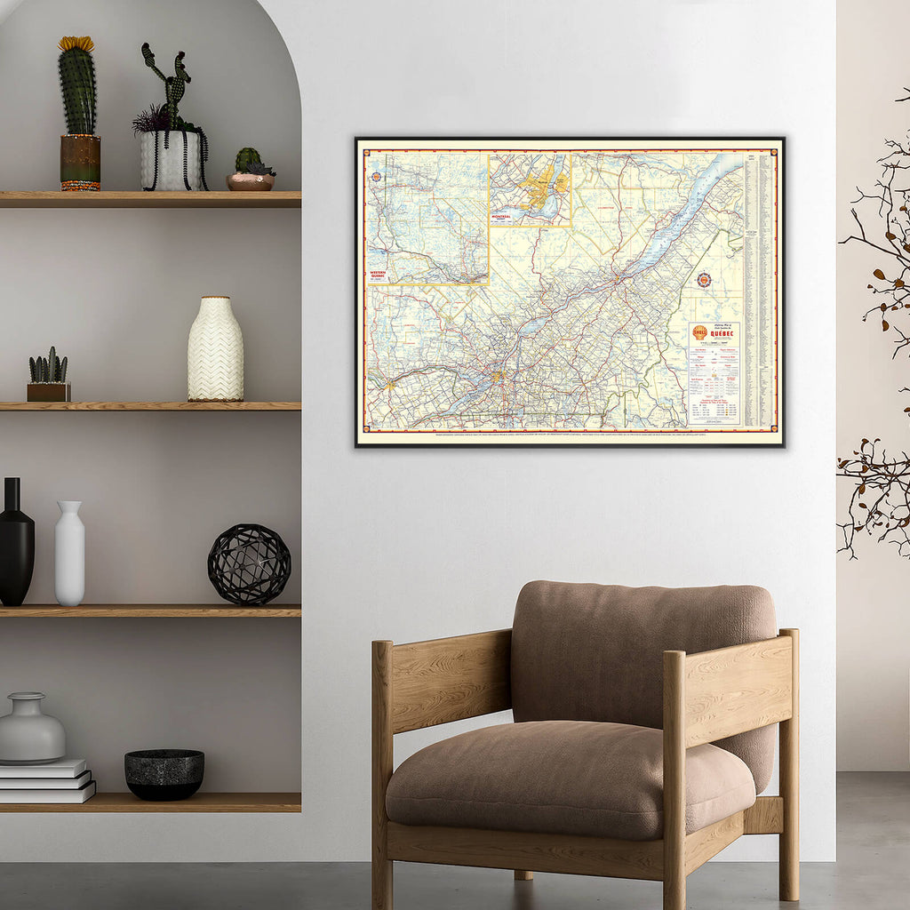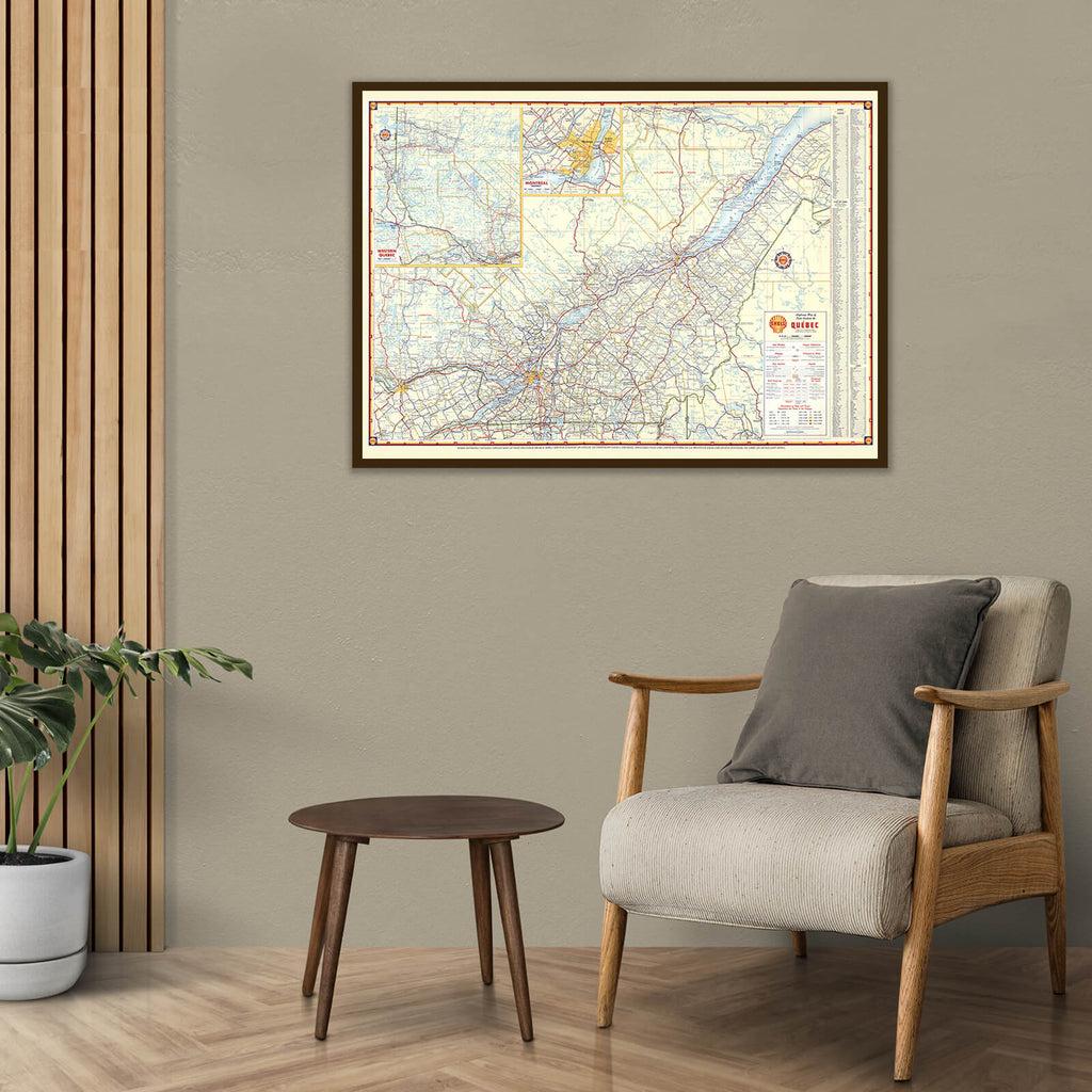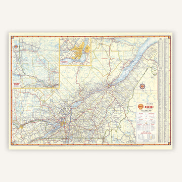 Replongez dans l'âge d'or des voyages en voiture avec cette réédition fidèle de la carte routière du Québec éditée par Shell en 1956. Une pièce unique qui allie nostalgie, histoire et un style décoratif inimitable.