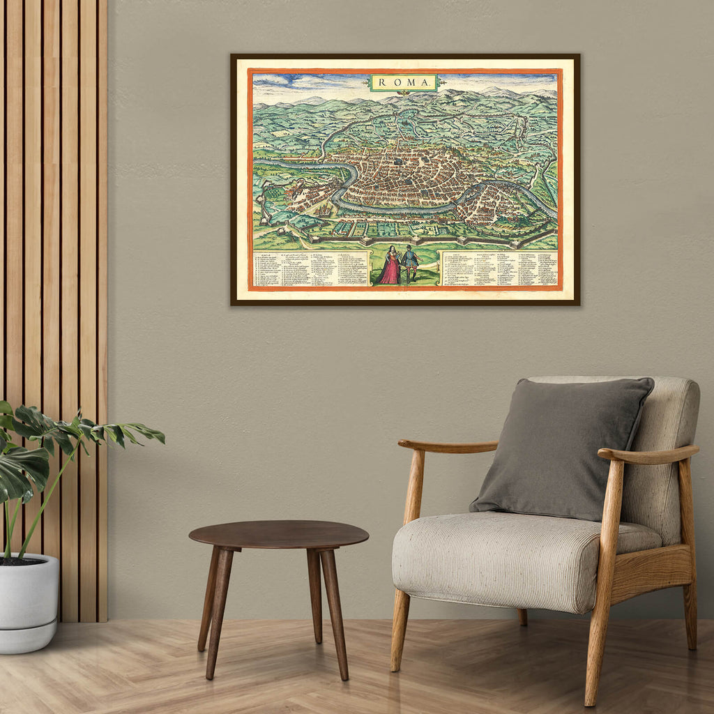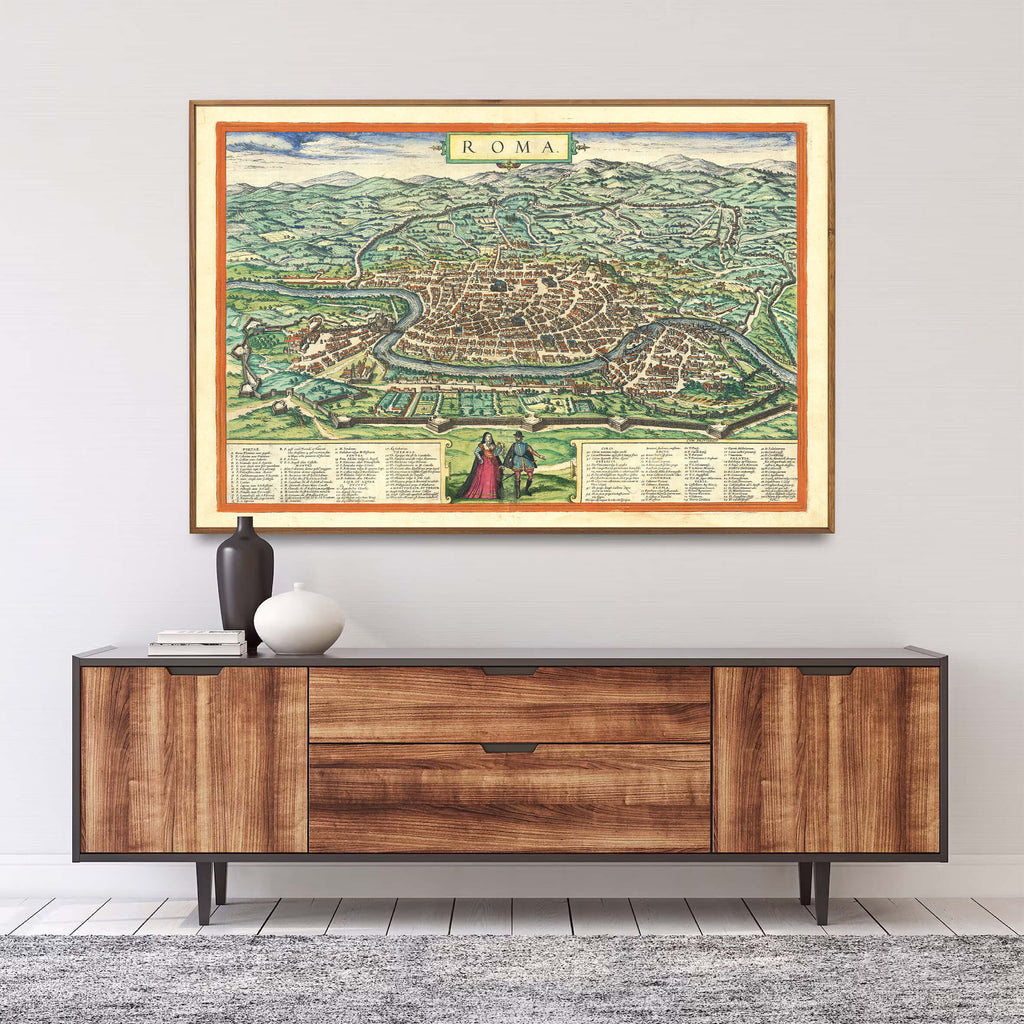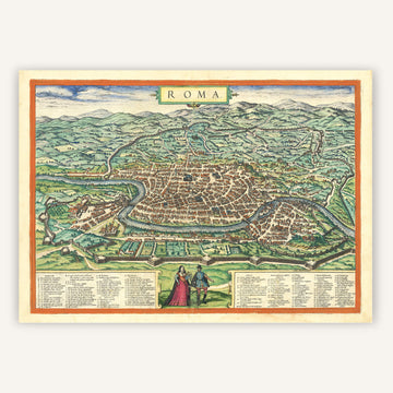 Découvrez cette carte ancienne décorative de la ville de Rome datant de 1572 ainsi que son graphisme illustré qui saura accorder un certain charme à votre décoration d'intérieur