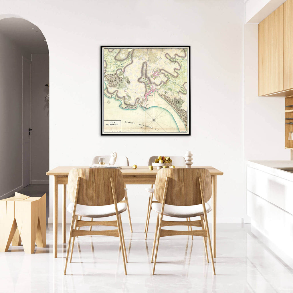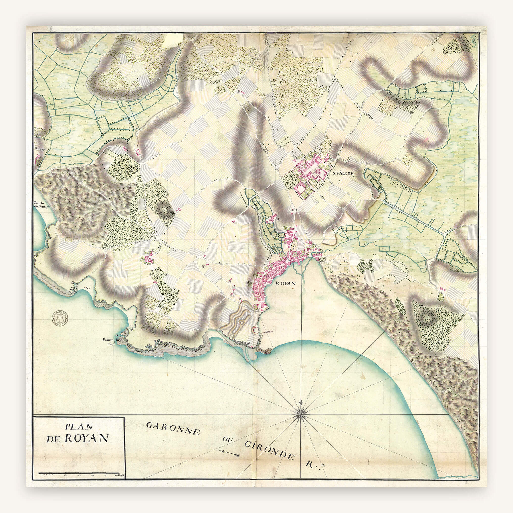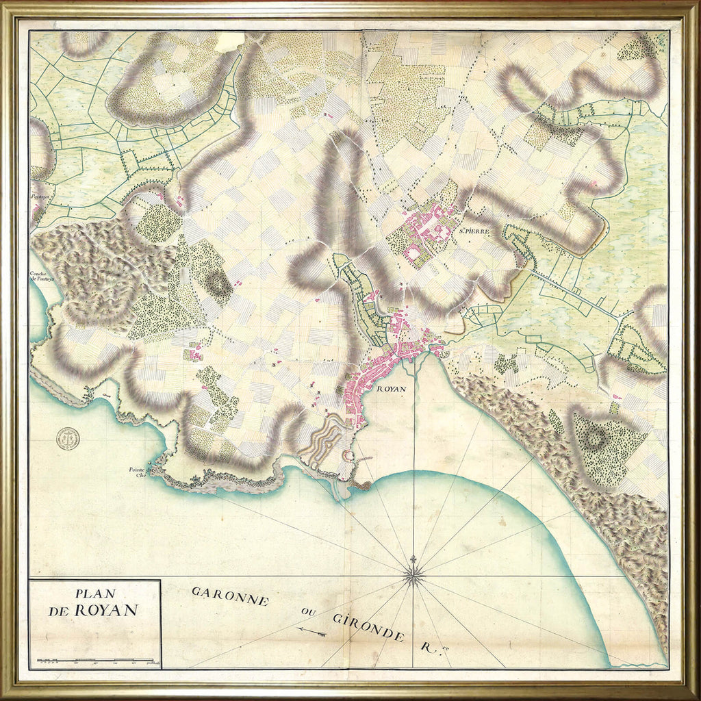 Au XVIIIe siècle, cette carte géographique de Royan offrait une vision fascinante de cette ville côtière du sud-ouest de la France. Chaque rue, chaque quai, chaque détail de la topographie était soigneusement représenté, offrant une perspective précieuse sur la géographie de Royan à cette époque.