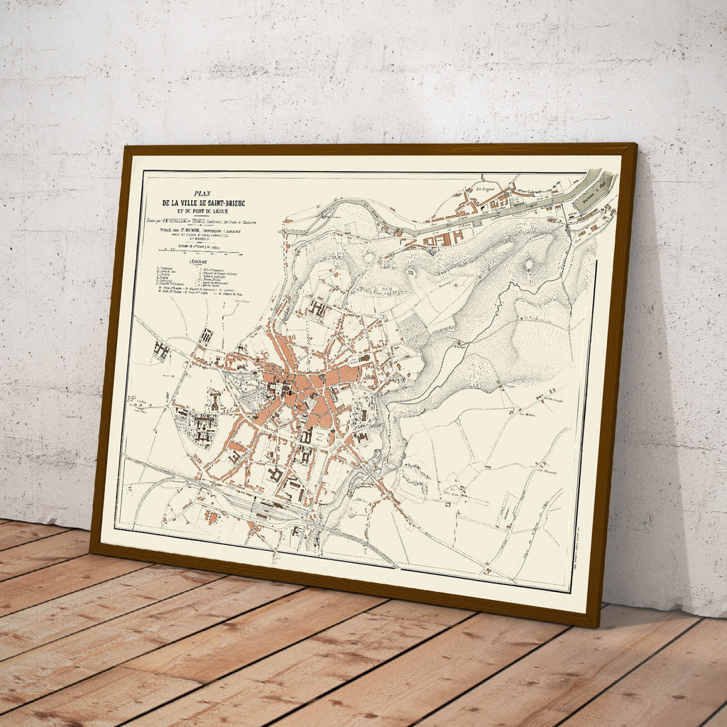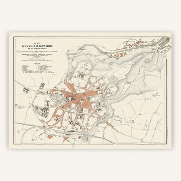 En 1897, cette carte géographique de Saint-Brieuc dévoilait une vue détaillée de cette ville pittoresque située sur la côte nord de la Bretagne, en France. Chaque rue, chaque quartier, chaque détail de la topographie était soigneusement représenté, offrant une perspective précieuse sur la ville et ses environs à cette époque.