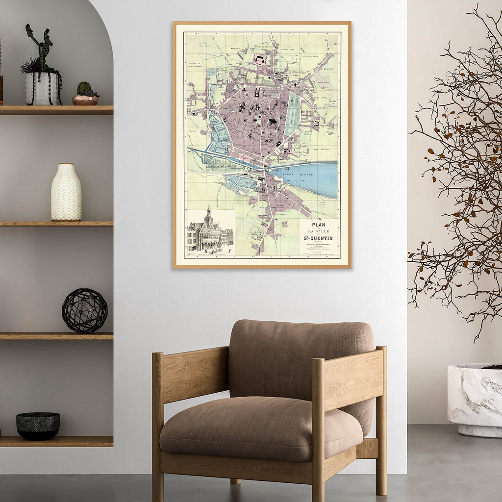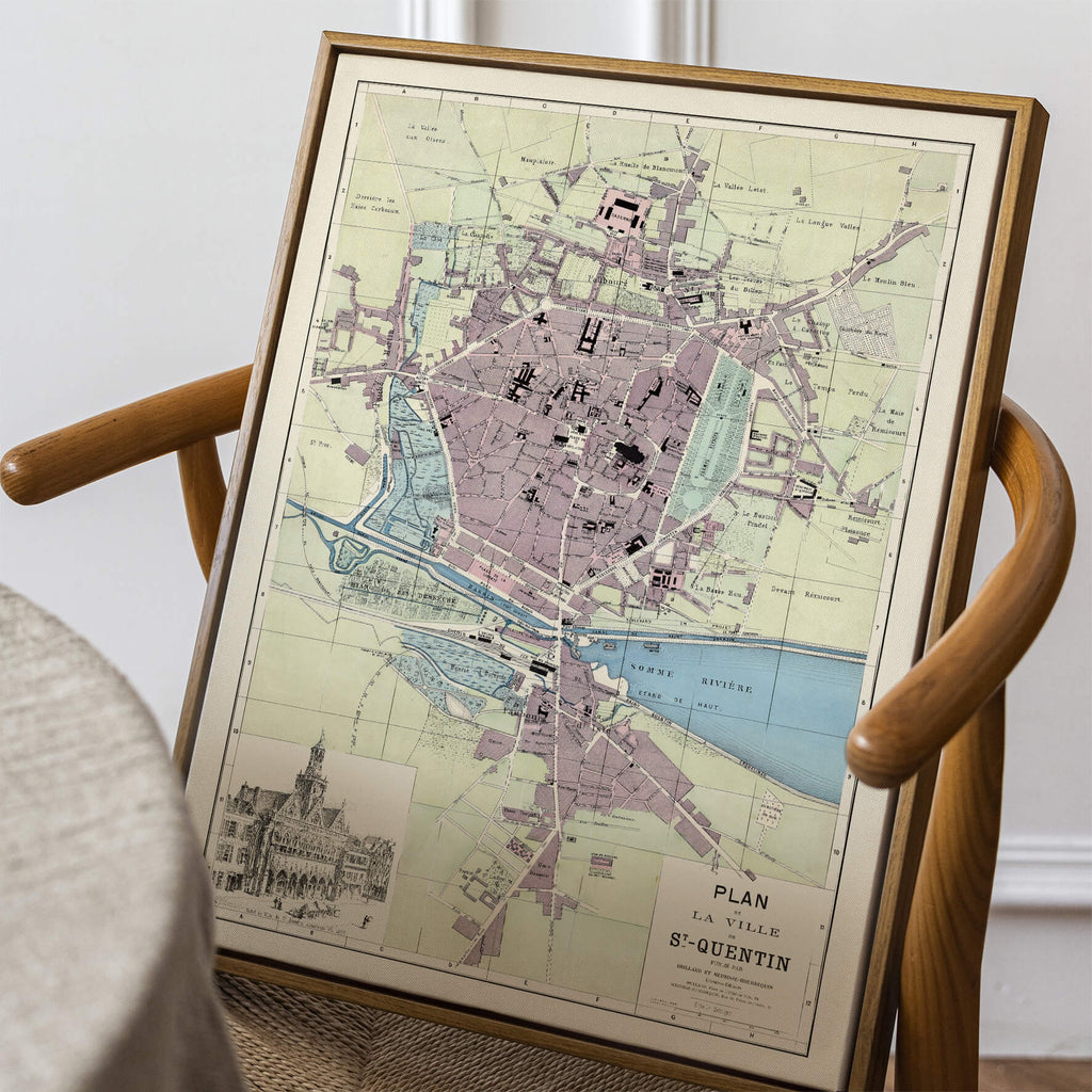 Découvrez cette carte géographique colorée de la commune française de Saint-Quentin datant de 1871 !