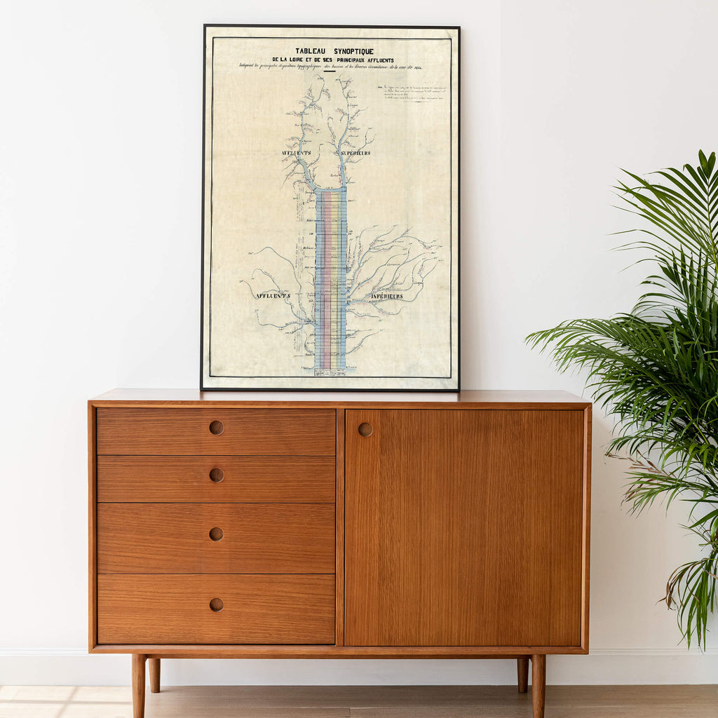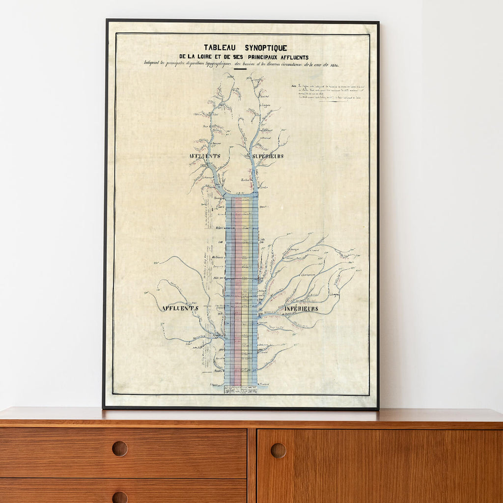 Affiche vintage tableau synoptique de la Loire 1856