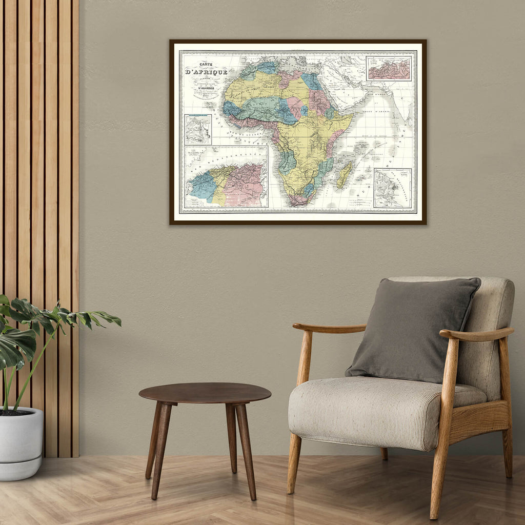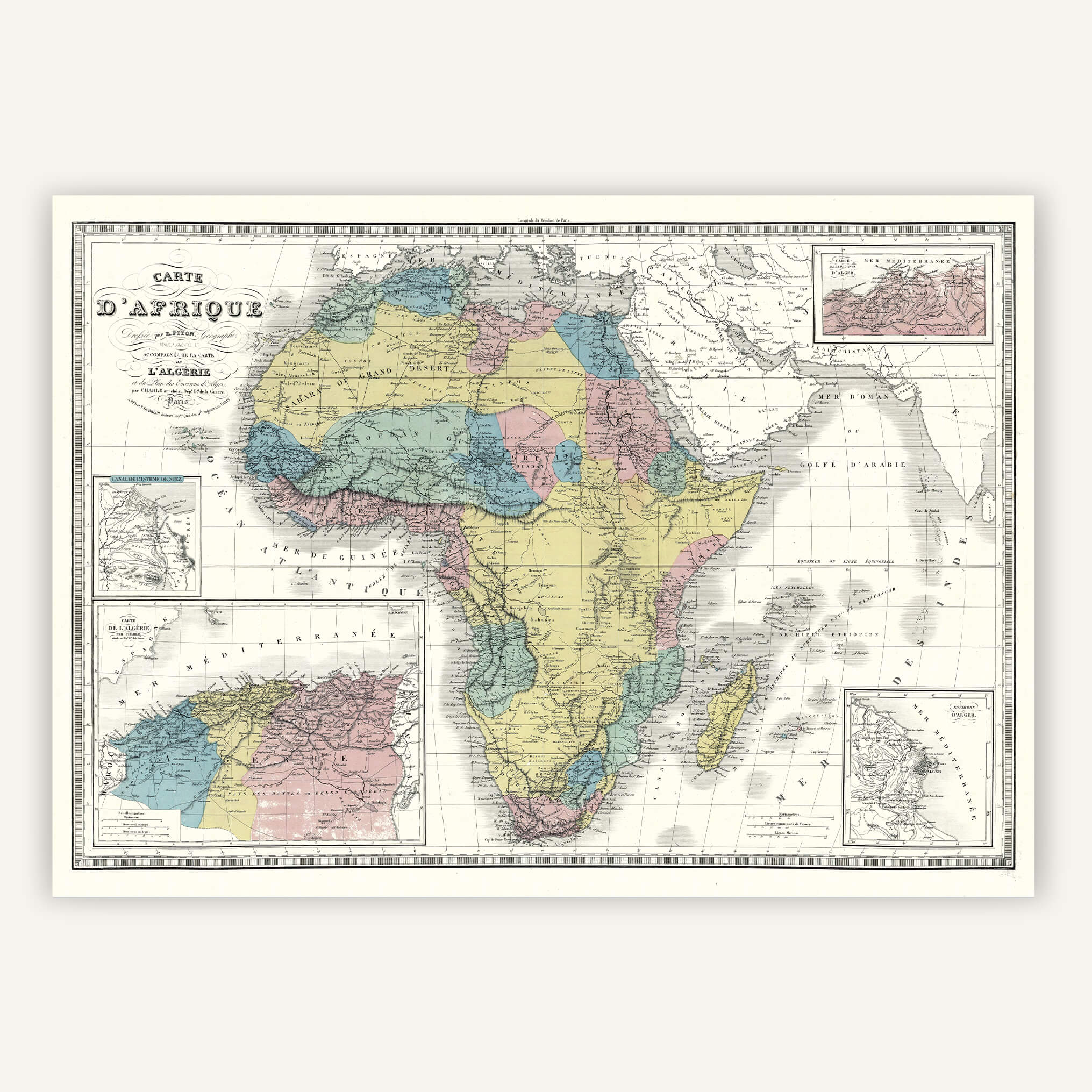 Belle carte ancienne et colorée de l'Afrique de 1868.