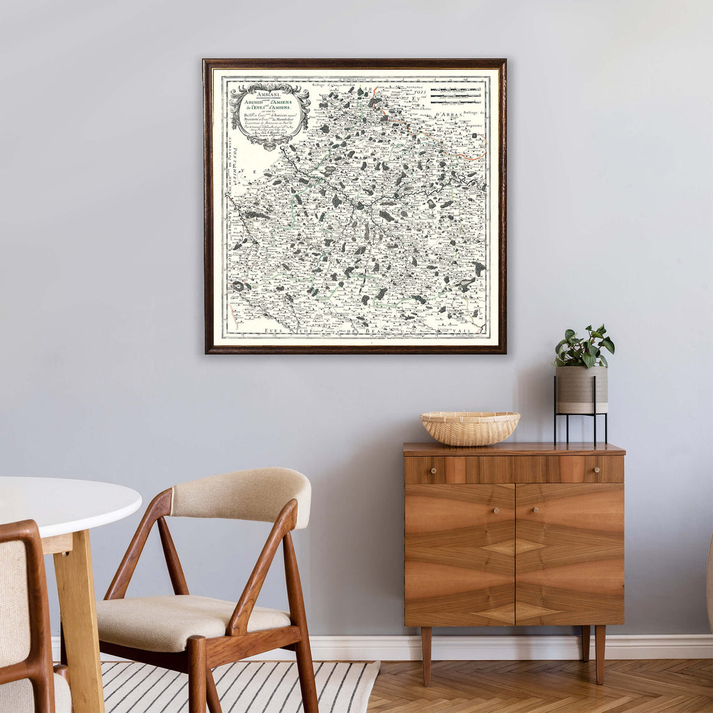 L'histoire de la ville d'Amiens, riche en événements et en transformations, est désormais accessible sous une forme artistique et patrimoniale grâce à la réédition de cette carte géographique décorative datant de 1667. Cette affiche offre une vue fascinante et détaillée de la ville telle qu'elle se présentait au XVIIe siècle.