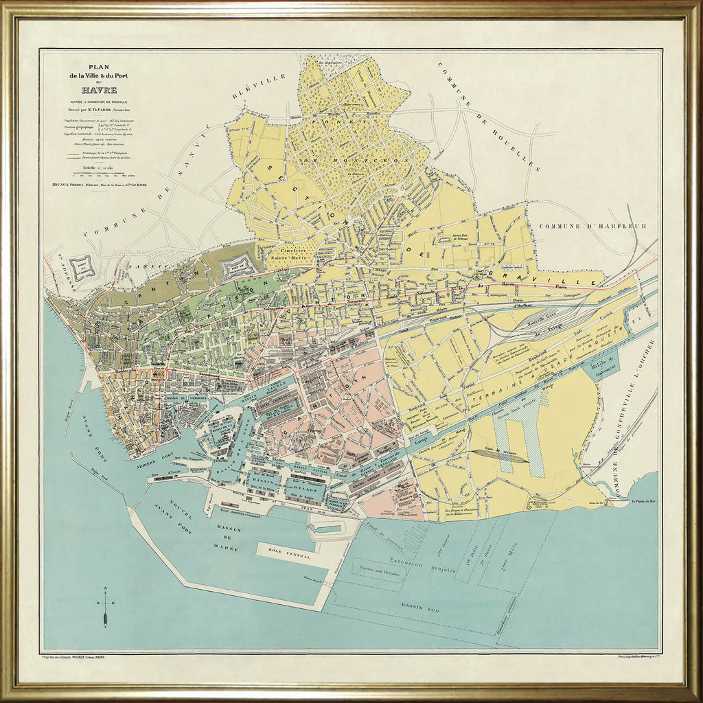 Craquez pour cette jolie carte géographique vintage du Havre de 1921 au format assez original !