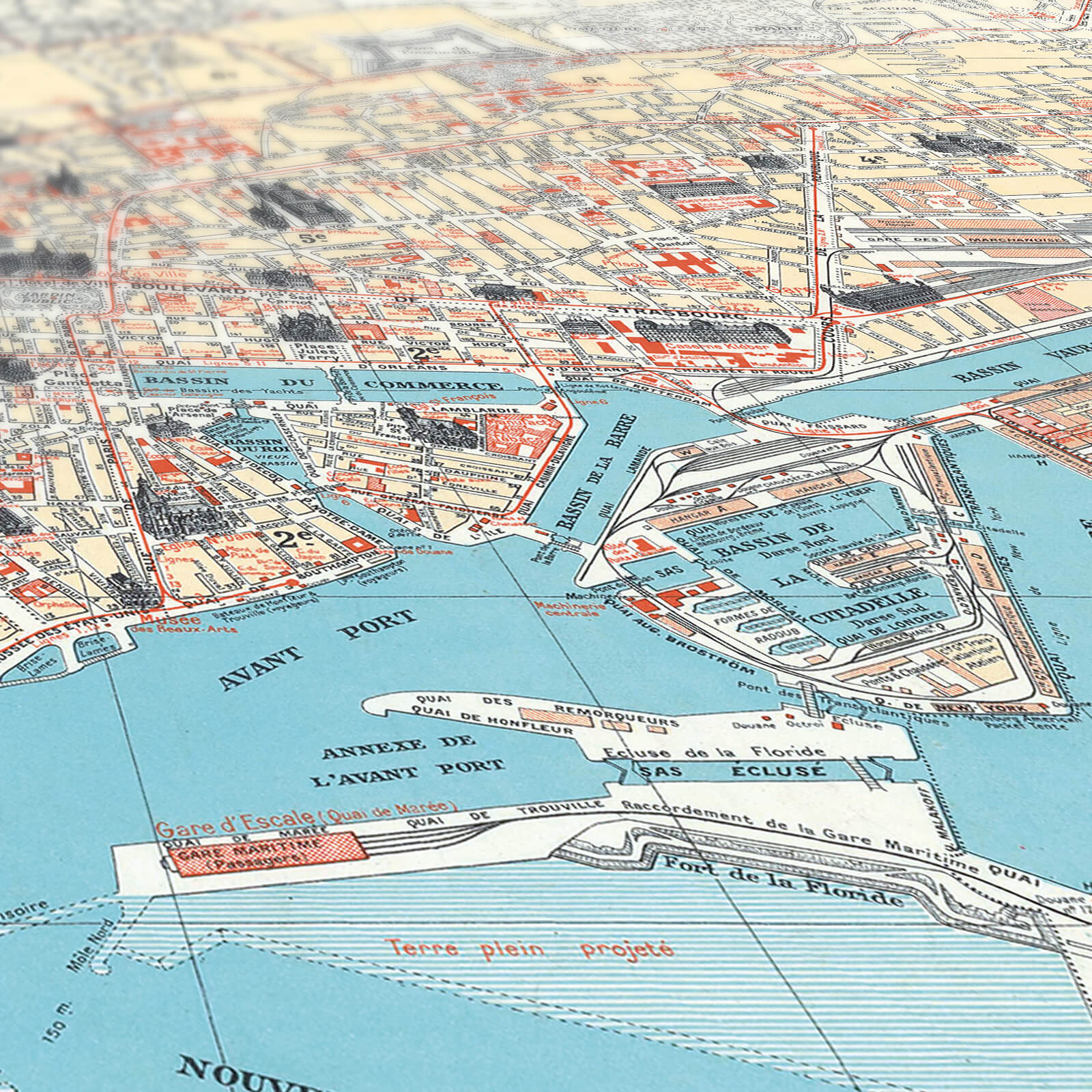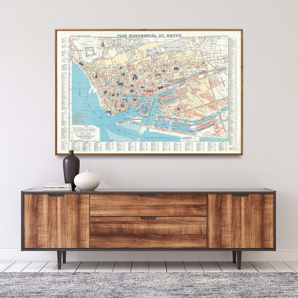 Découvrez ce plan des monuments de la ville du Havre sur cette carte géographique décorative haute en couleurs !