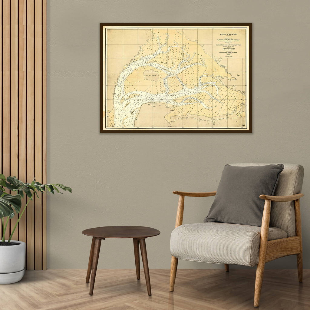 Affiche vintage Bassin d'Arcachon Bathymétrie 1866