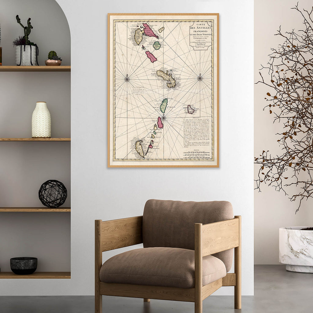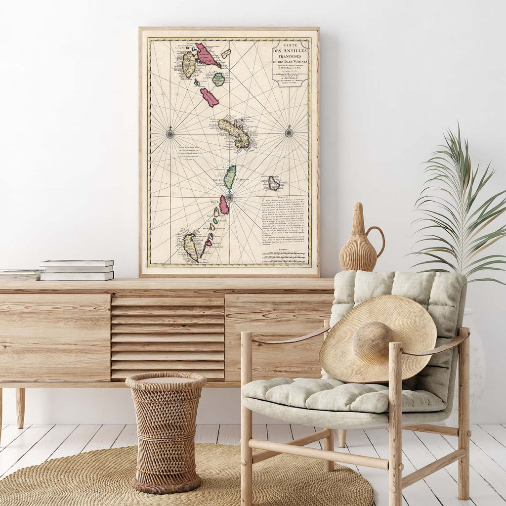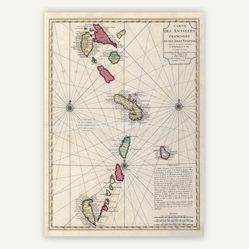 Cette carte vintage des Antilles est une réédition d'une ancienne carte géographique datant de 1717. Son titre d'origine est "Carte des Antilles et des îles voisines".