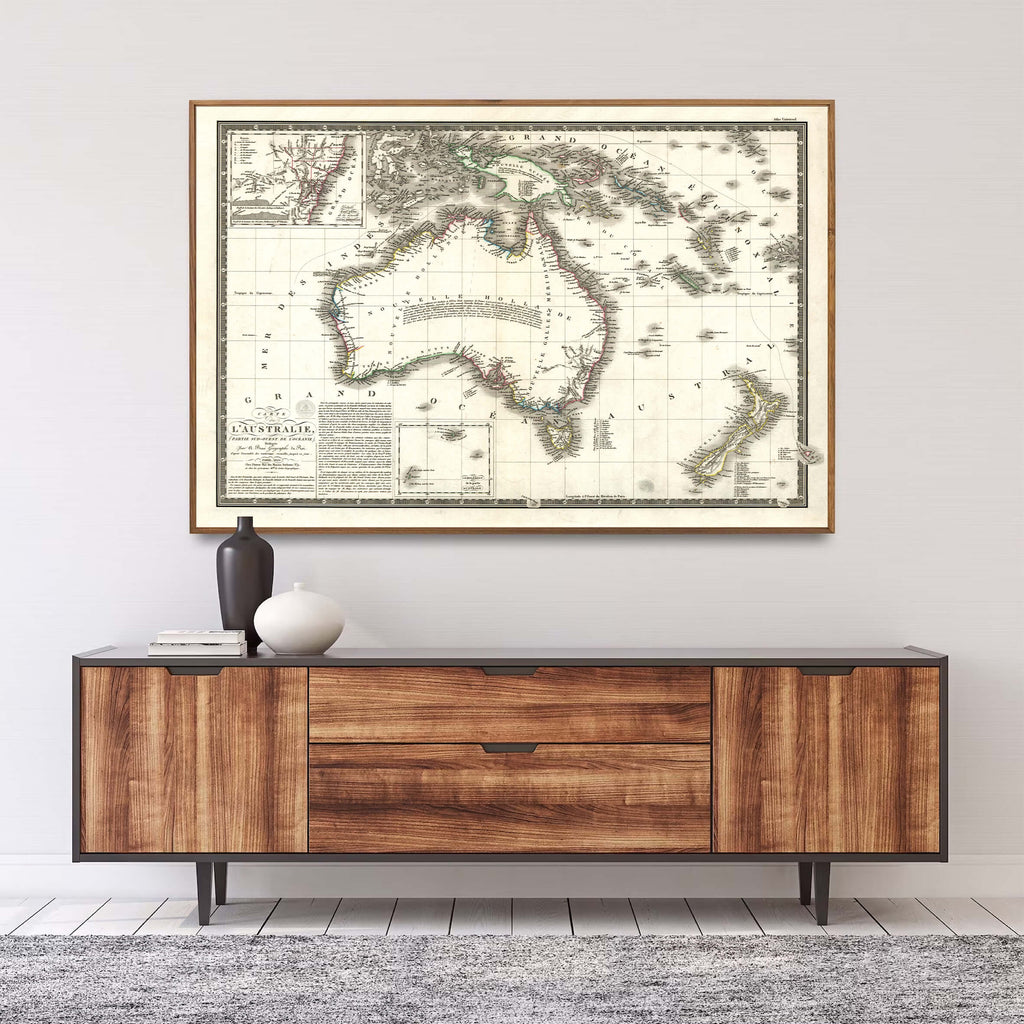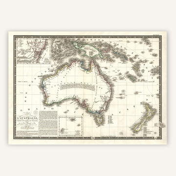 Cette affiche vintage de l'Australie en 1826 sera le cadeau déco idéal pour les natifs ou amoureux de ce pays tout comme les férus d'histoire et de géographie.