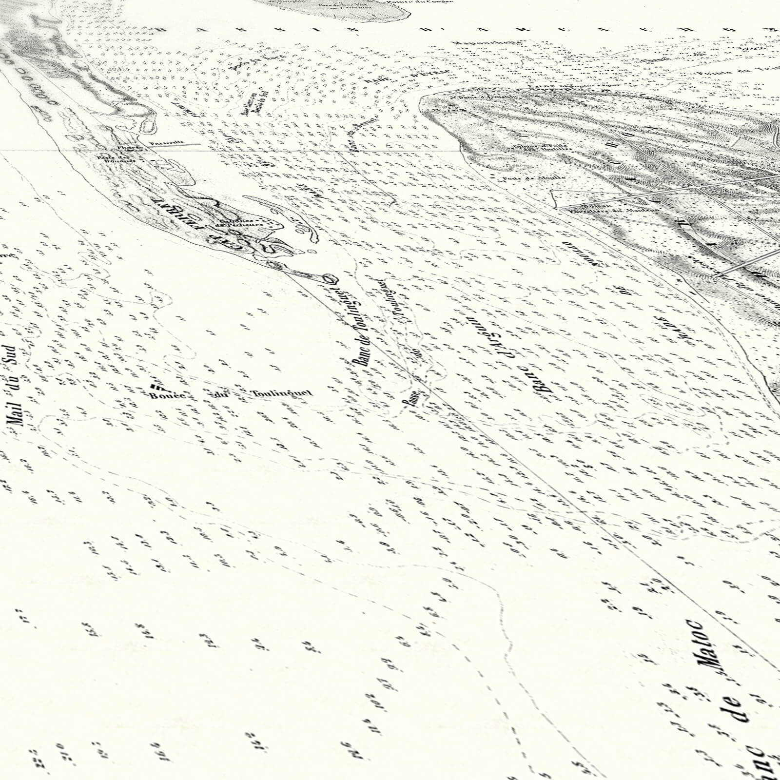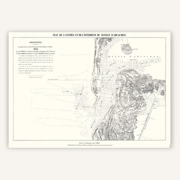 Cette ancienne carte marine du Bassin d'Arcachon est une réédition d'une ancienne carte des passes du bassin de navigation, datant de 1854.