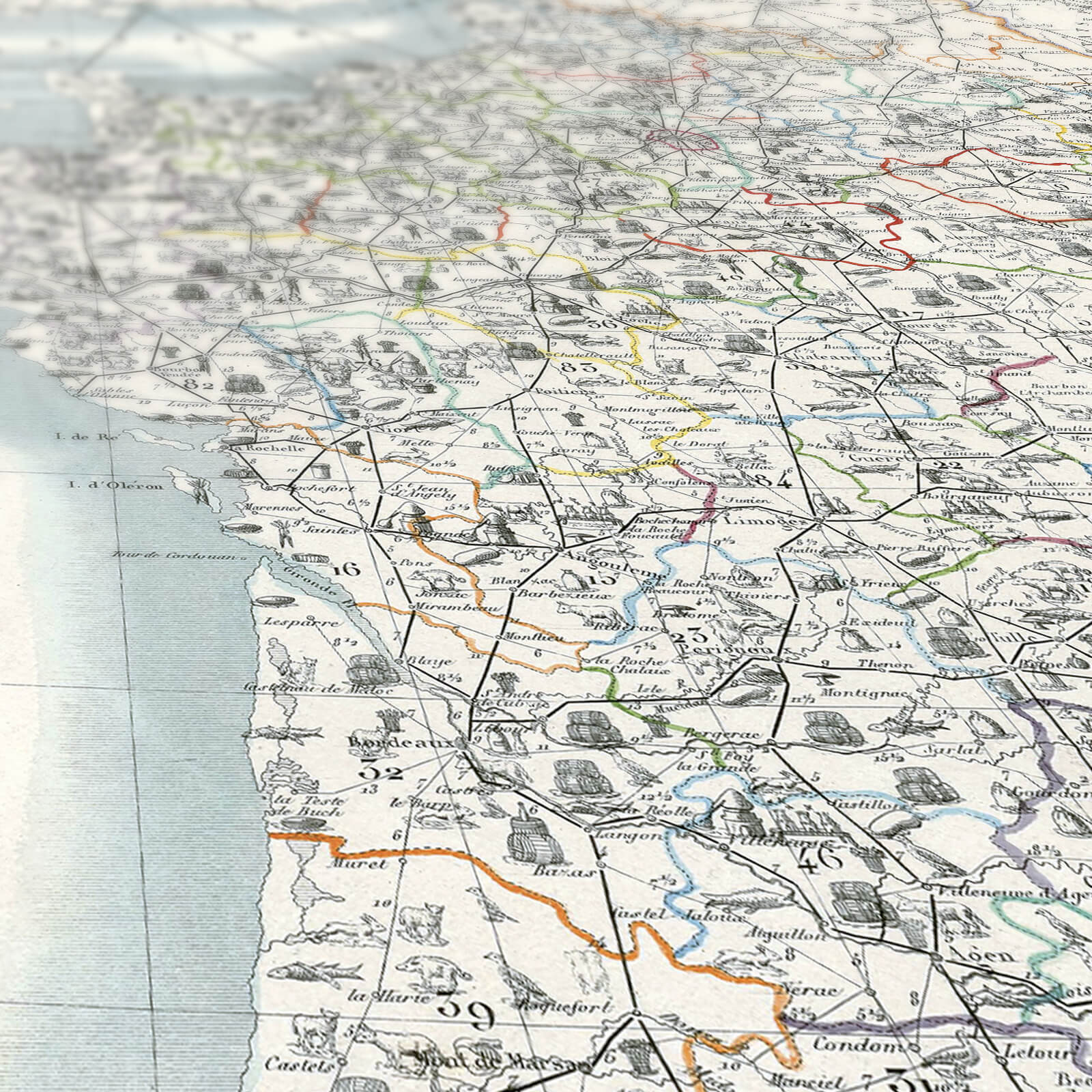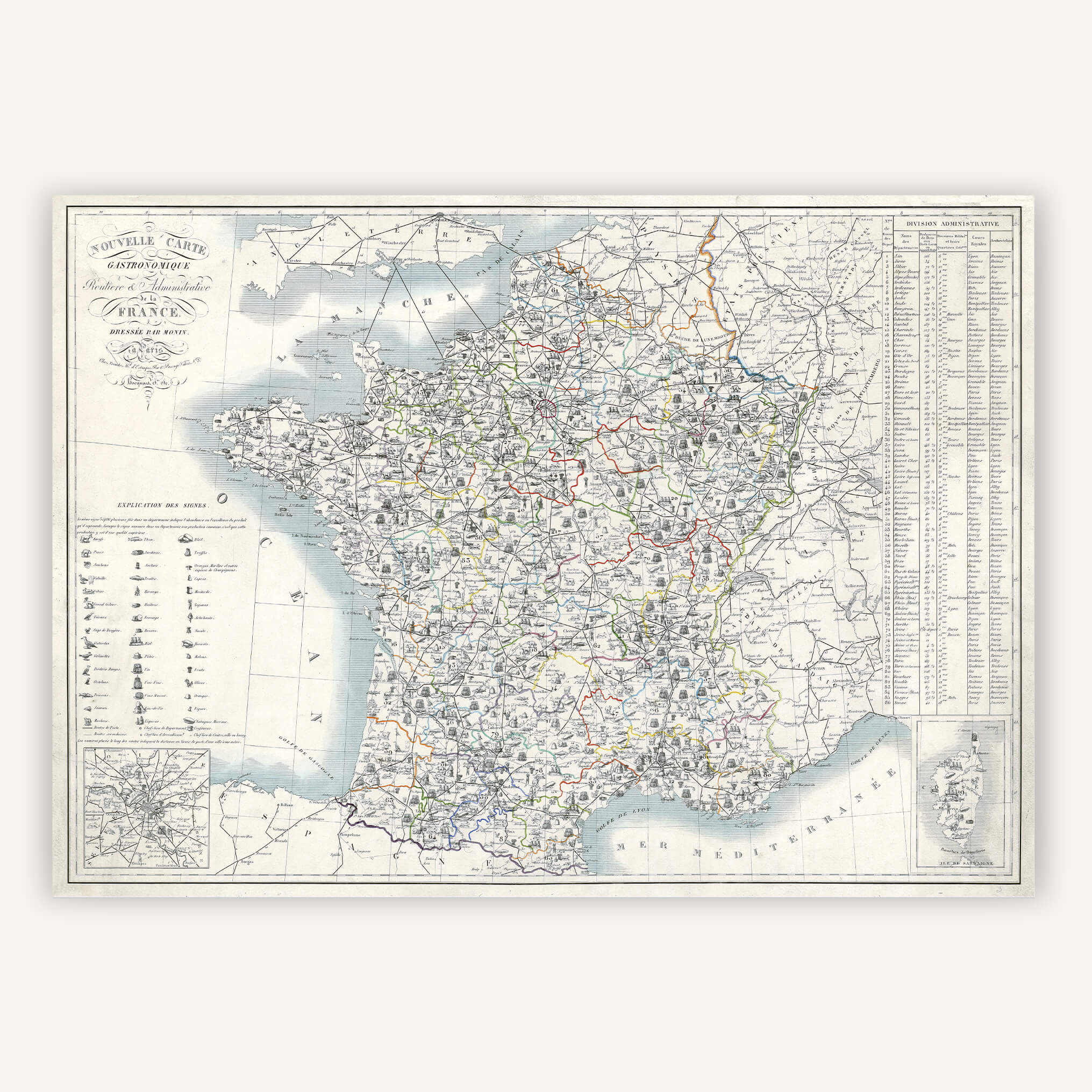 En avant pour un tour gastronomique dans la France de 1830 sur cette réédition d'une carte gastronomique, routière et administrative ?