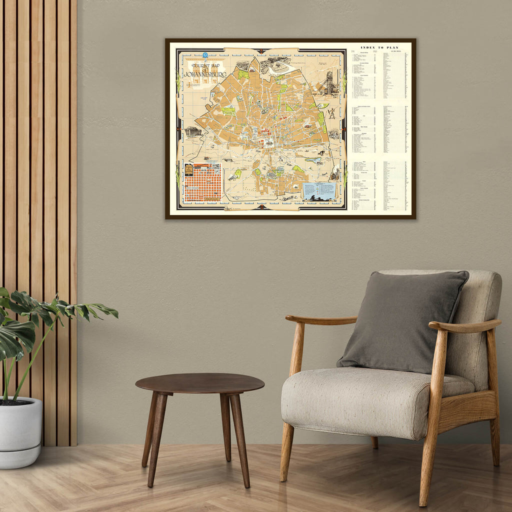 Dans un style épuré, dans des couleurs douces, ce plan de Johannesbourg sera une très belle décoration murale pour les amoureux de cette ville mythique d'Afrique du Sud !