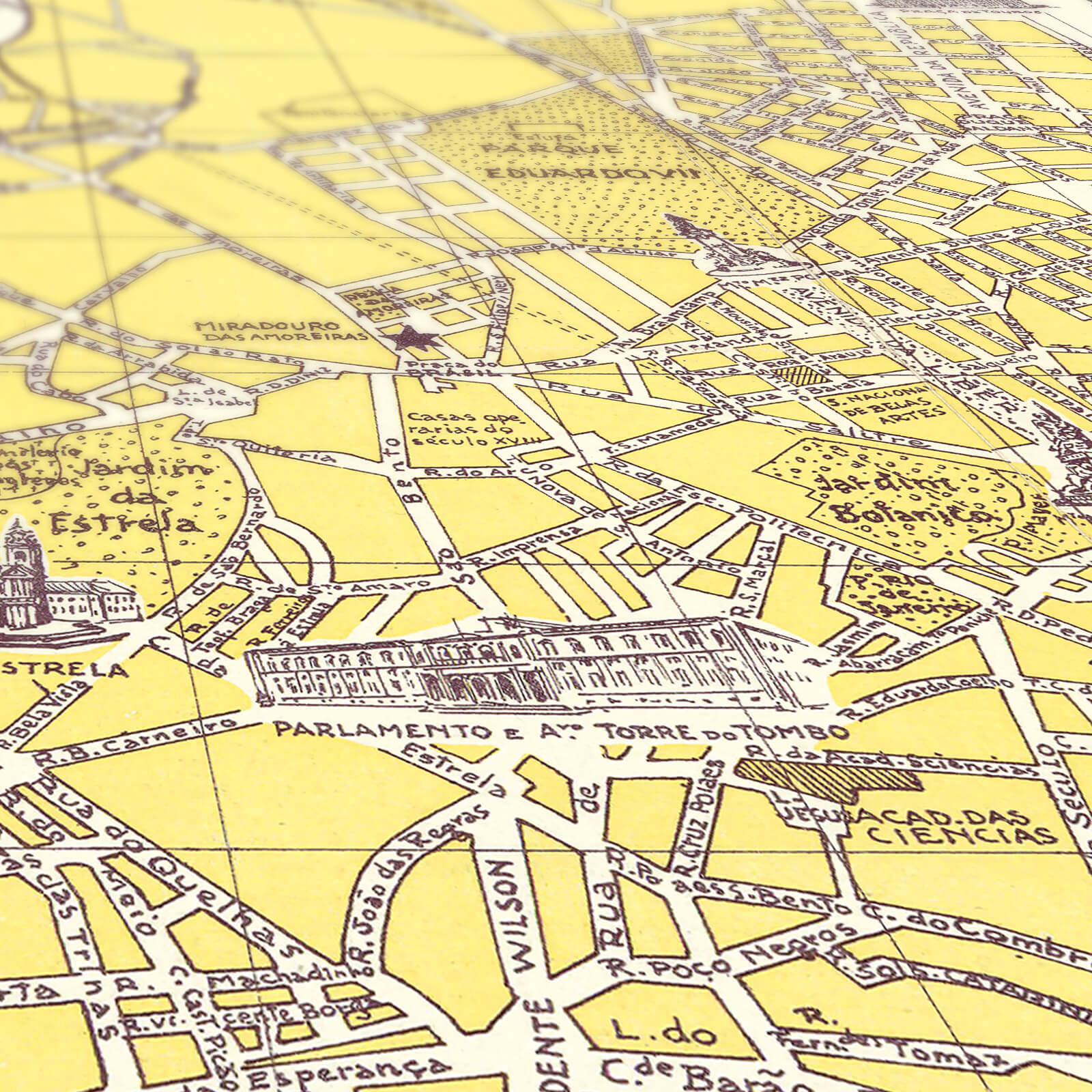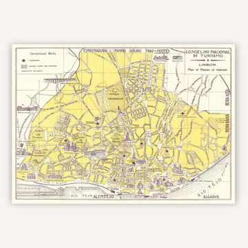 Petit tour dans le Bairro Alto de 1930 ? Sur cet ancien plan de la ville de Lisbonne sont dessinés ses principaux lieux d'intérêt. Cette réédition conserve son cachet vintage grâce un graphisme épuré et une impression sur papier de création.