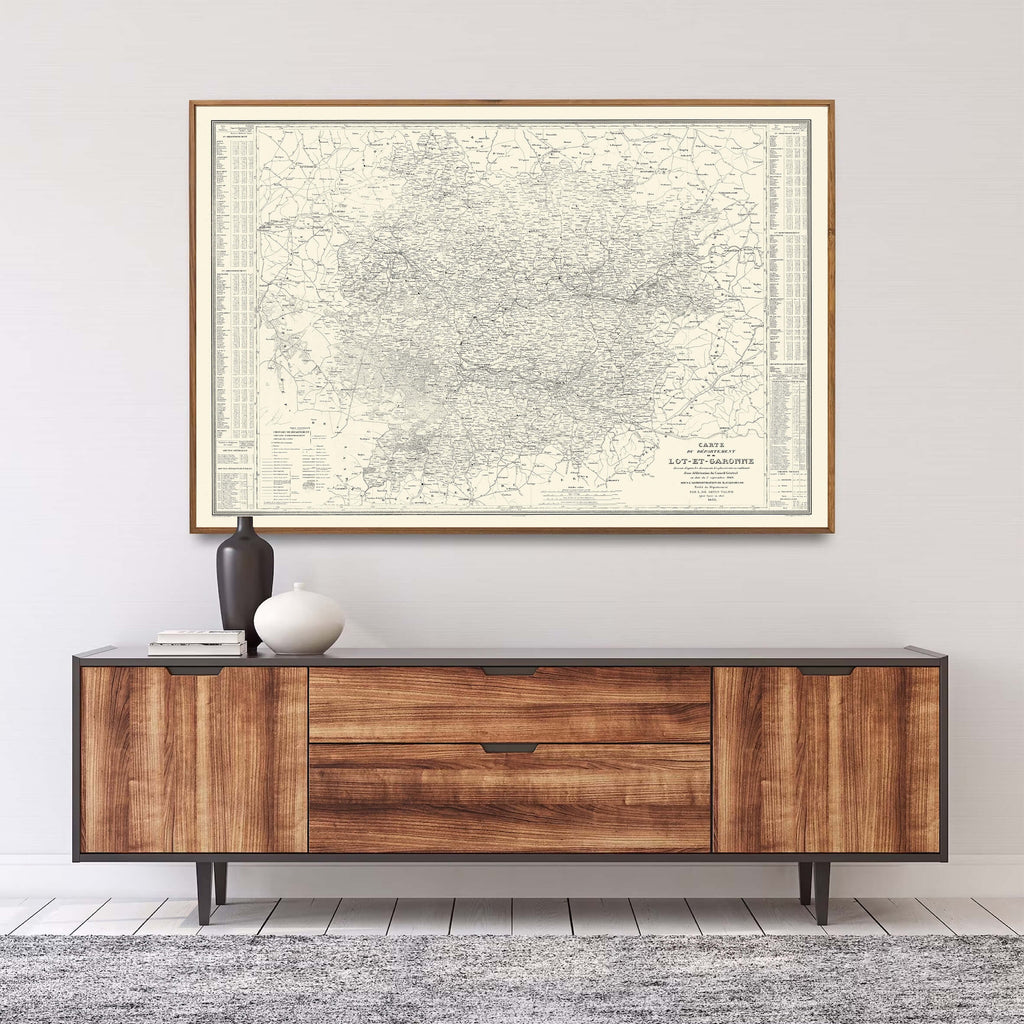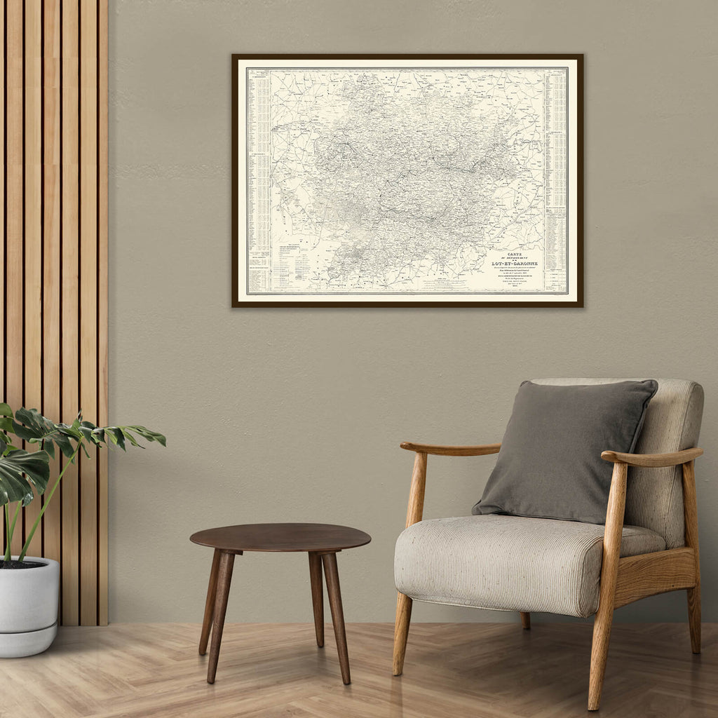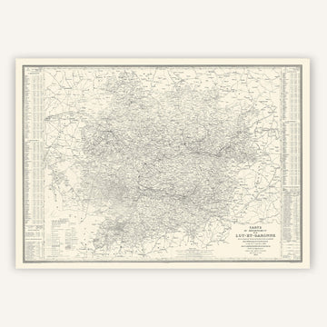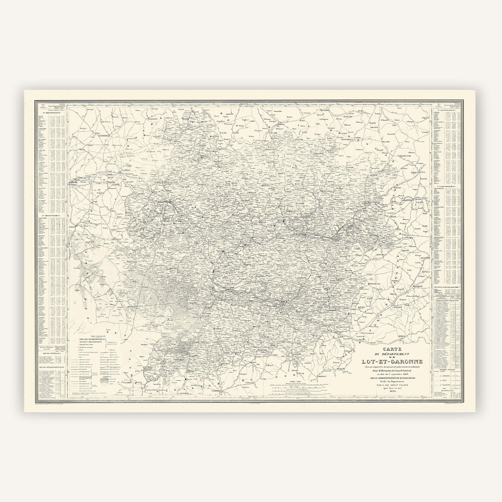 Naviguez sur les routes du Lot-et-Garonne sur cette carte vintage de 1853 ! Elle est imprimée sur du papier de création pour son aspect grainé et esthétique.
