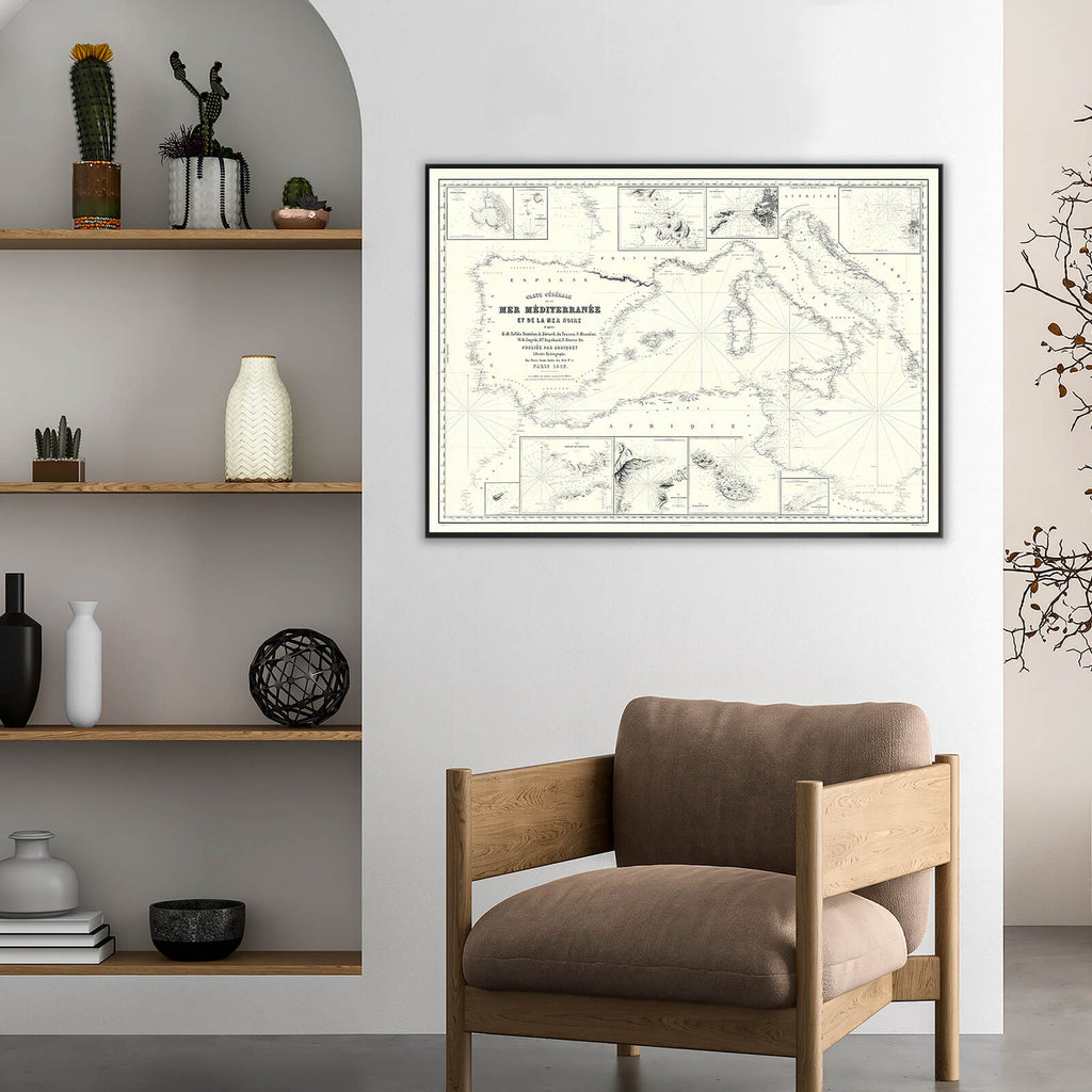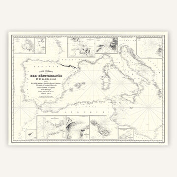 Décorez vos murs avec cette carte Générale de la Mer Méditerranée de 1847.