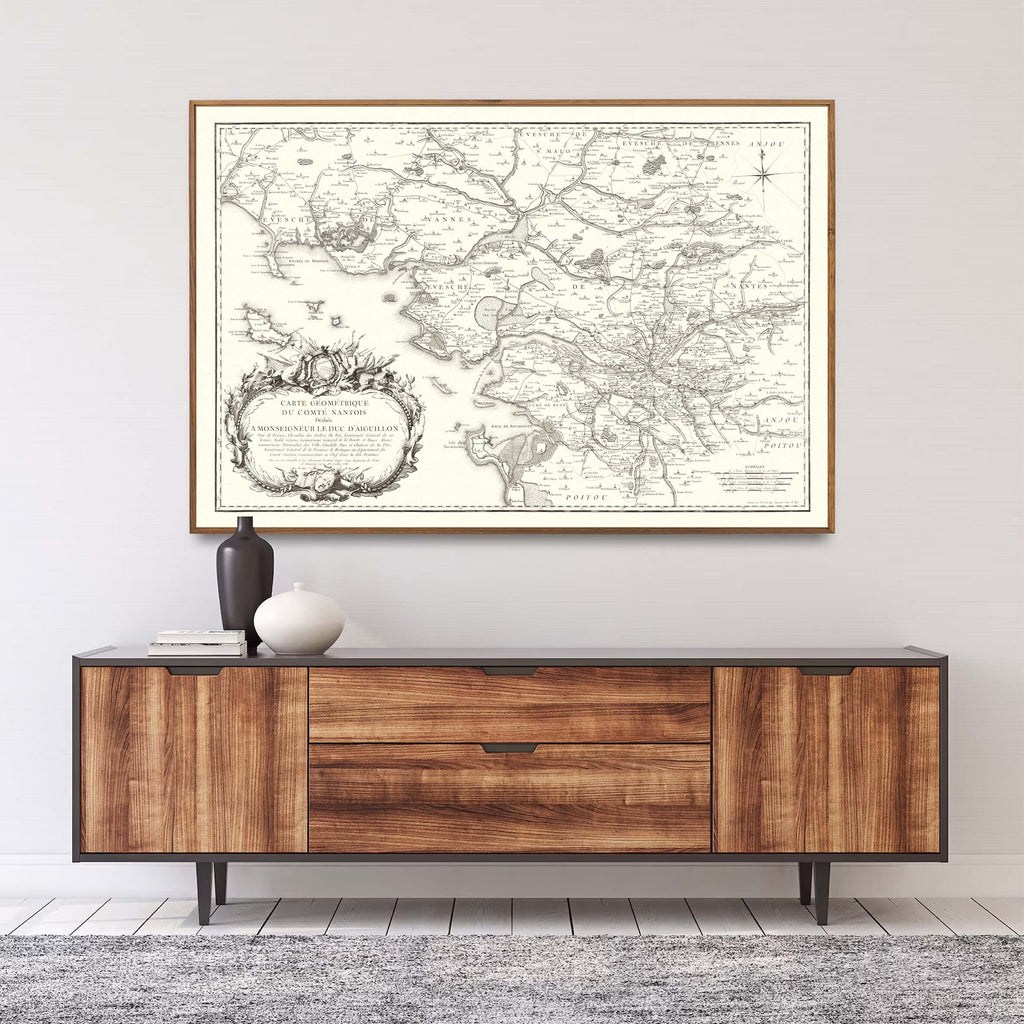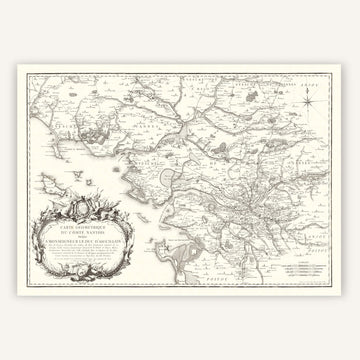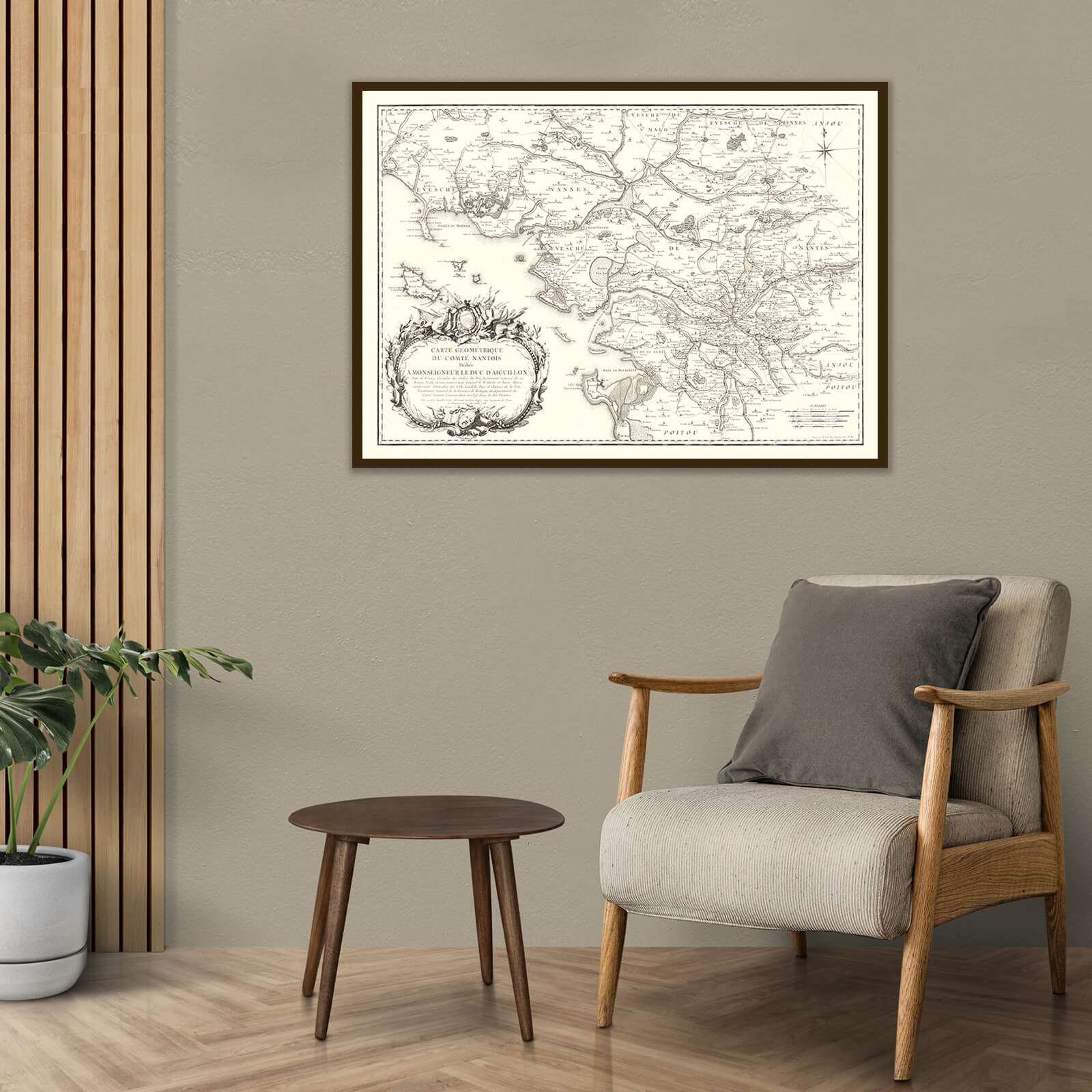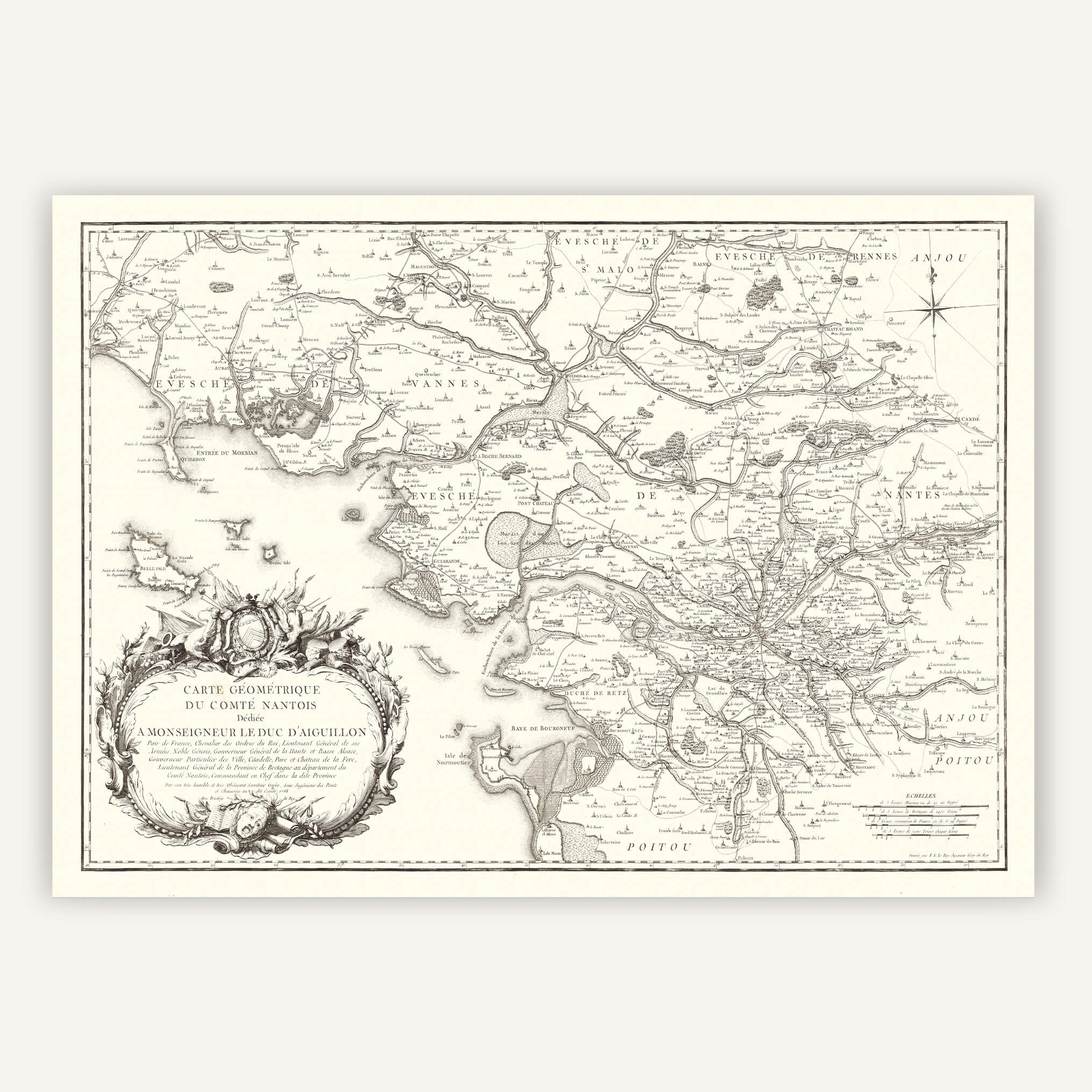 Superbe carte géographique ancienne du Comté Nantois de 1768, au cachet vintage résolument conservé.