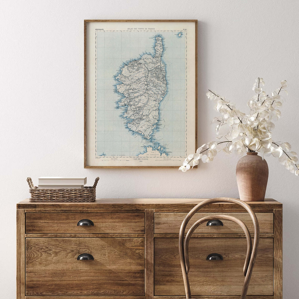 Cette carte n'est pas seulement un objet décoratif ; elle est un témoignage précieux de l'histoire et de l'évolution du territoire corse, rendue accessible grâce à cette réédition de haute qualité. Elle ravira les passionnés de cartographie ancienne, les amoureux de la Corse, ou toute personne cherchant une pièce unique et chargée d'histoire pour décorer son intérieur.