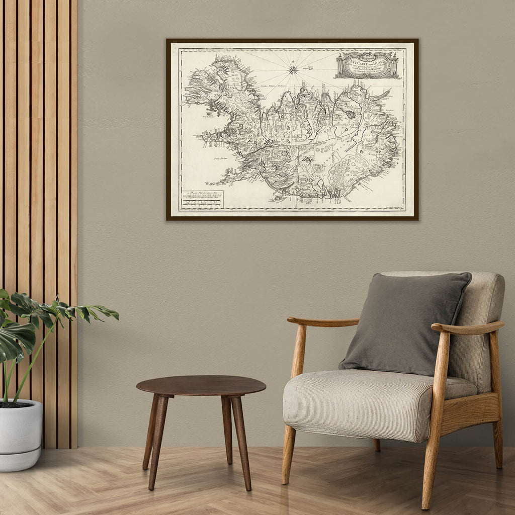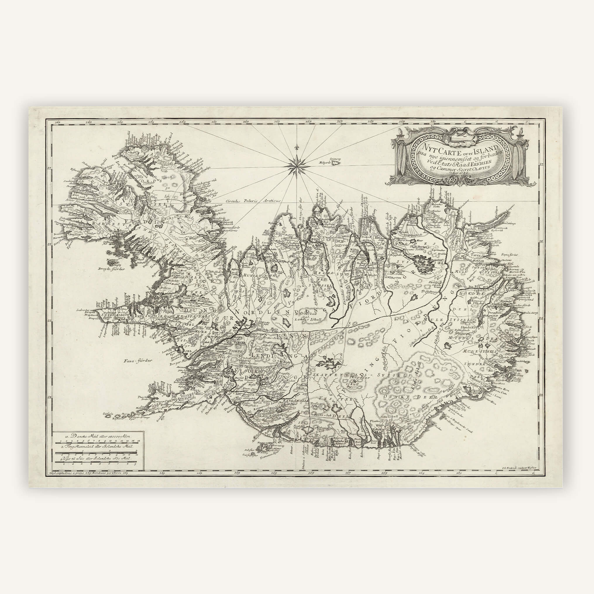 Superbe carte géographique ancienne de l'Islande de 1780.