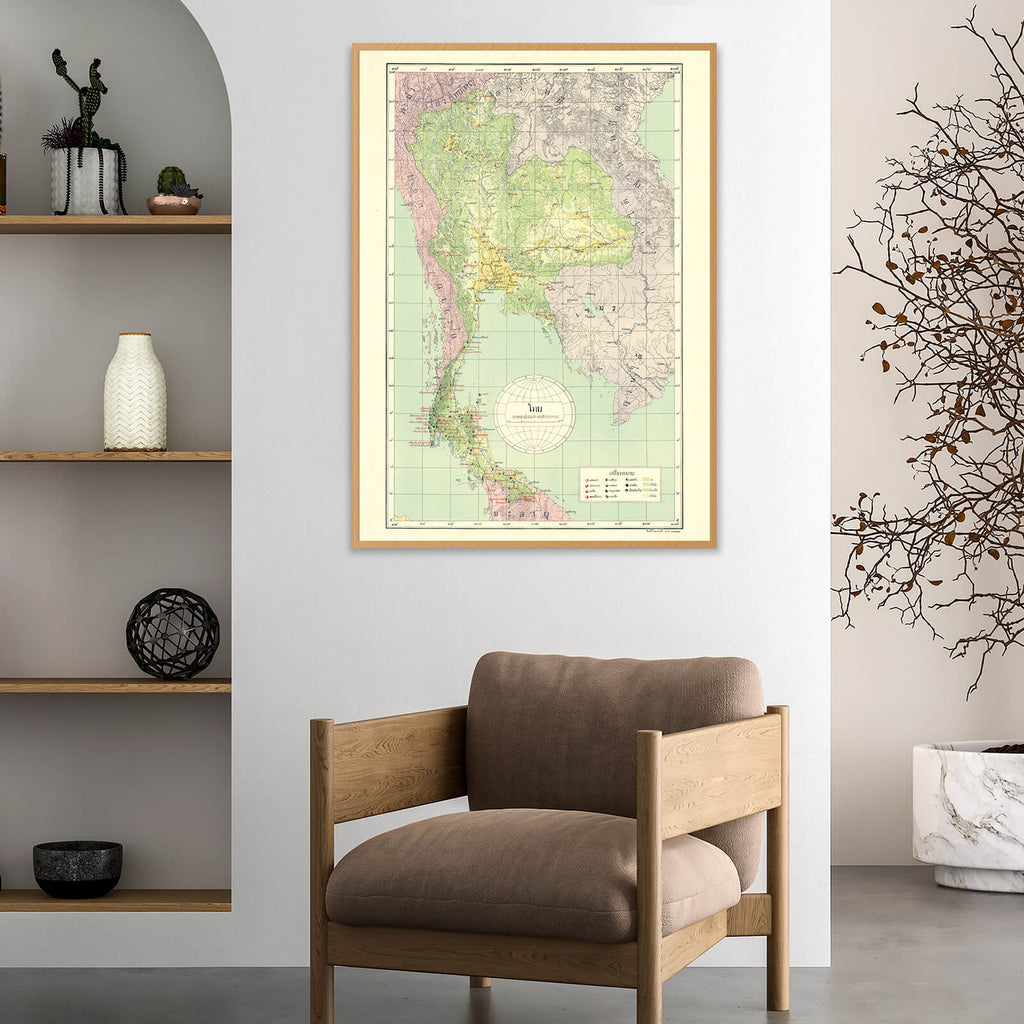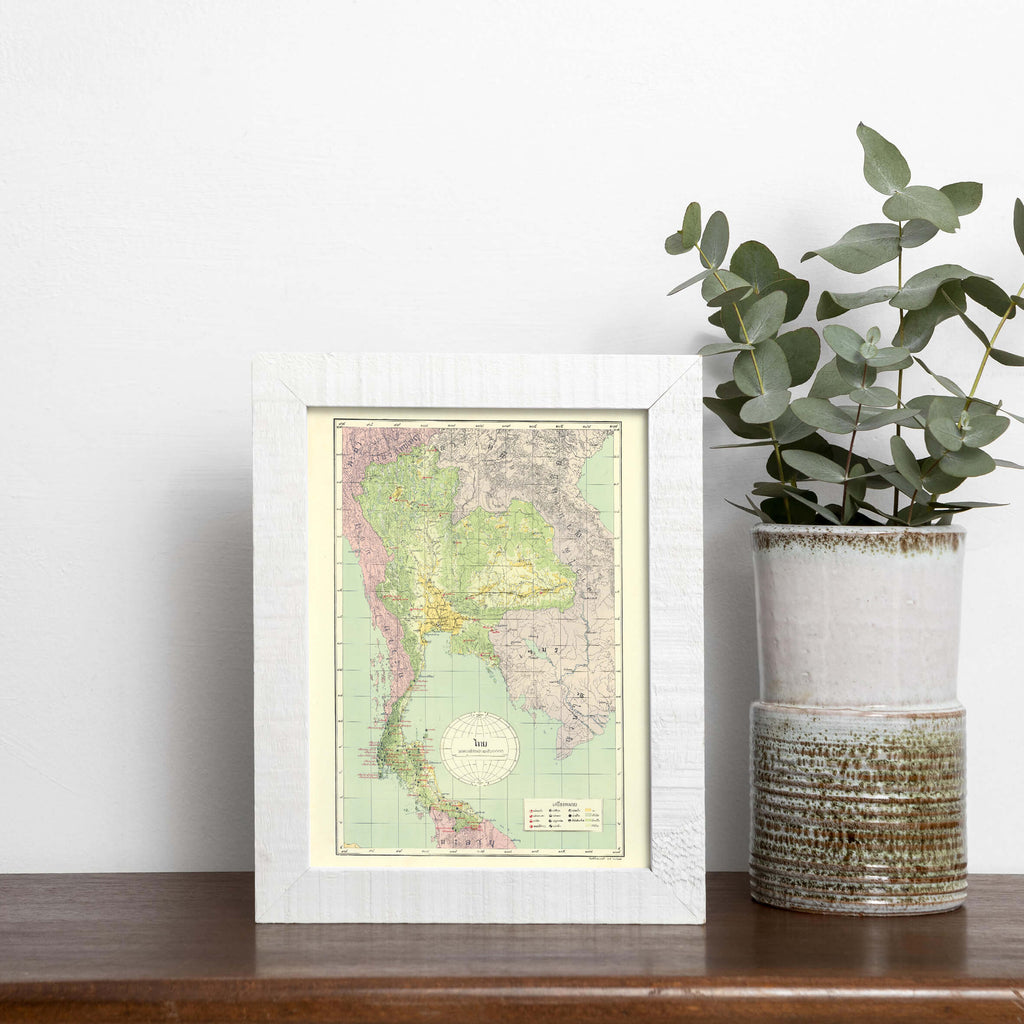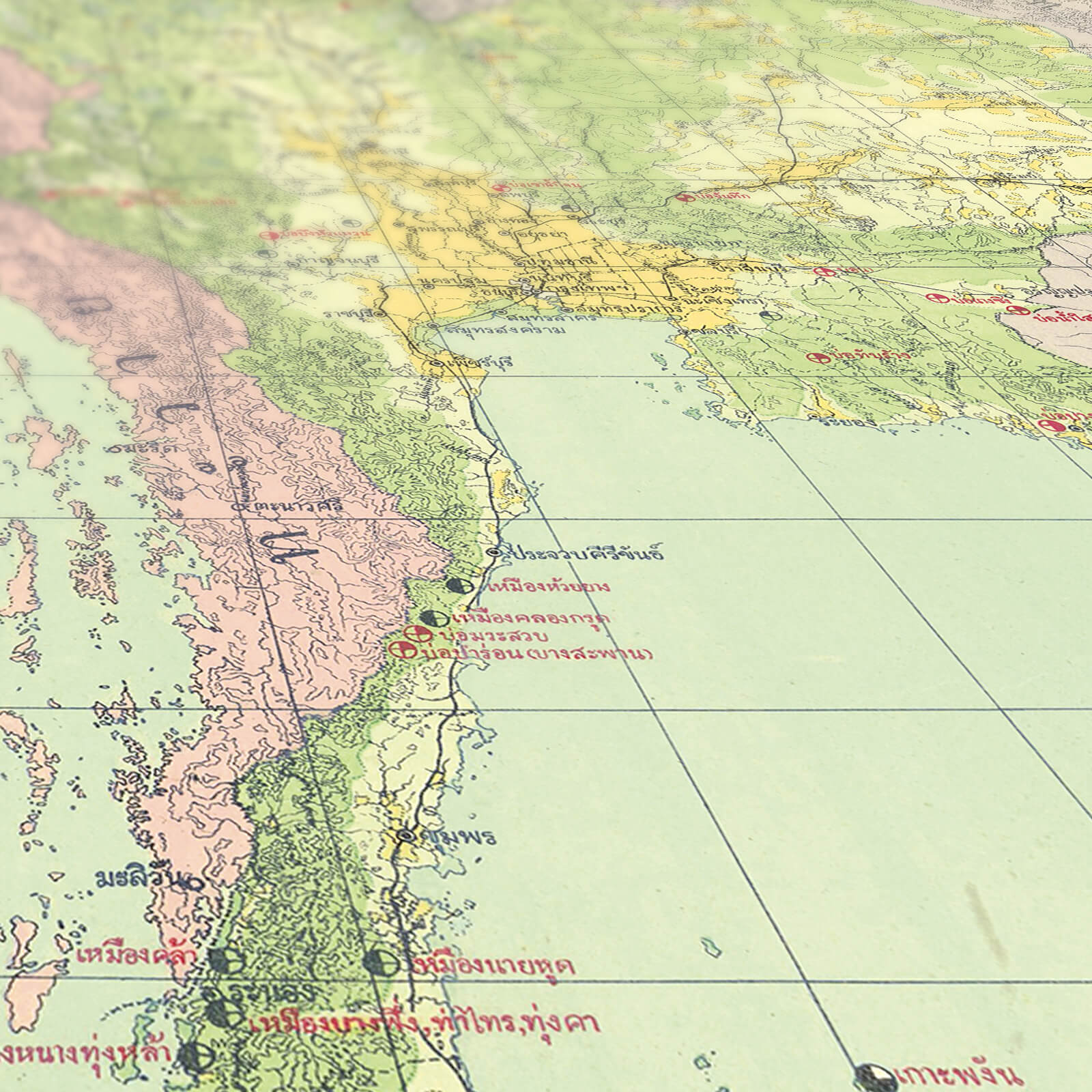 Nous vous présentons cette carte décorative vintage de la Thaïlande de 1930 qui nous procure une certaine envie d'évasion, pas vous ?