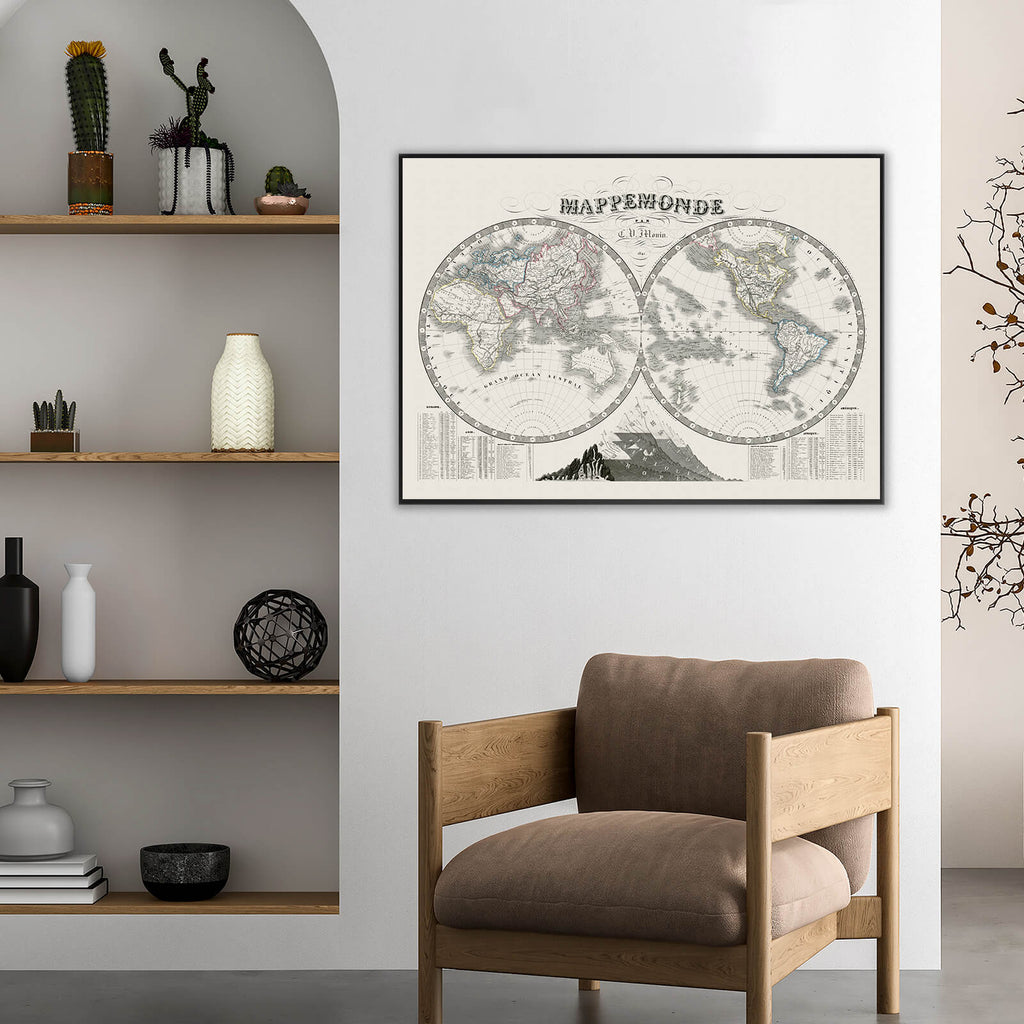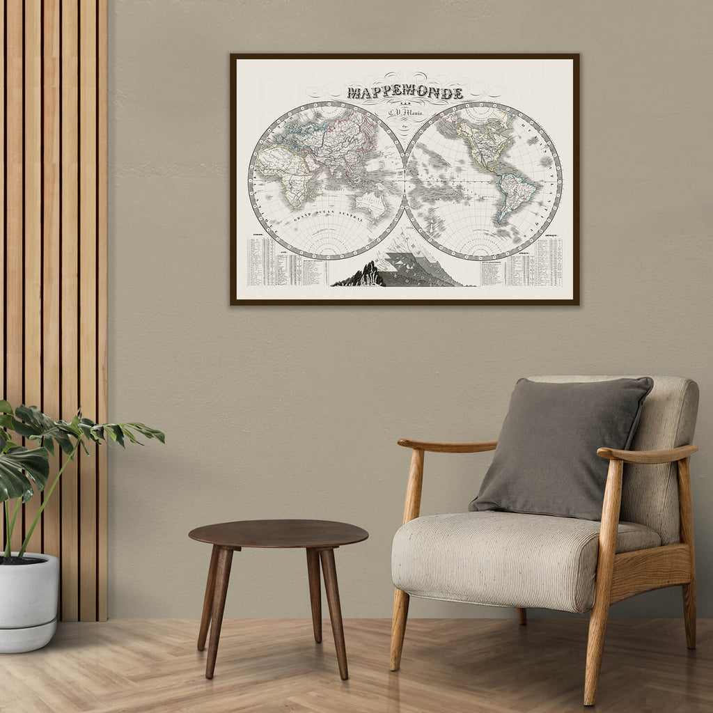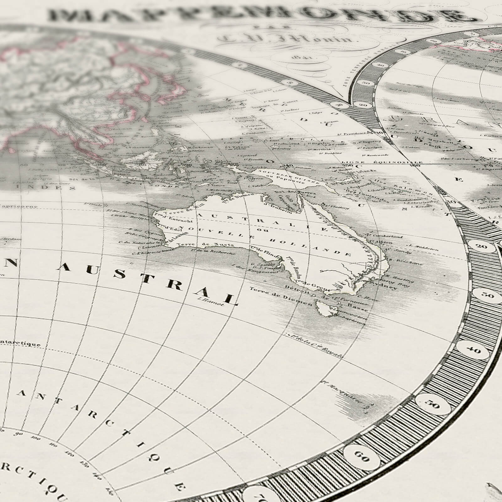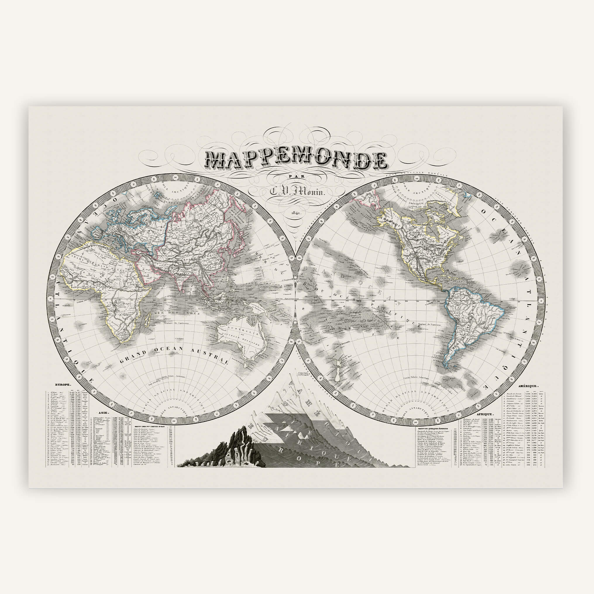 Craquez pour cette Mappemonde ancienne de 1841 dessinée par Charles V. Monin, un cartographe français.
