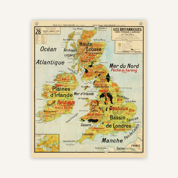 Carte scolaire - Îles Britanniques Physique et Agricole n°28