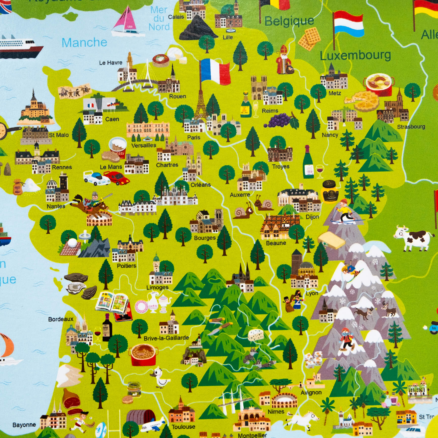 Grâce à ce puzzle, les enfants peuvent apprendre la géographie de la France — ses régions, villes, reliefs — tout en s’amusant. C’est une jolie manière de stimuler la curiosité et les connaissances géographiques dès le plus jeune âge.