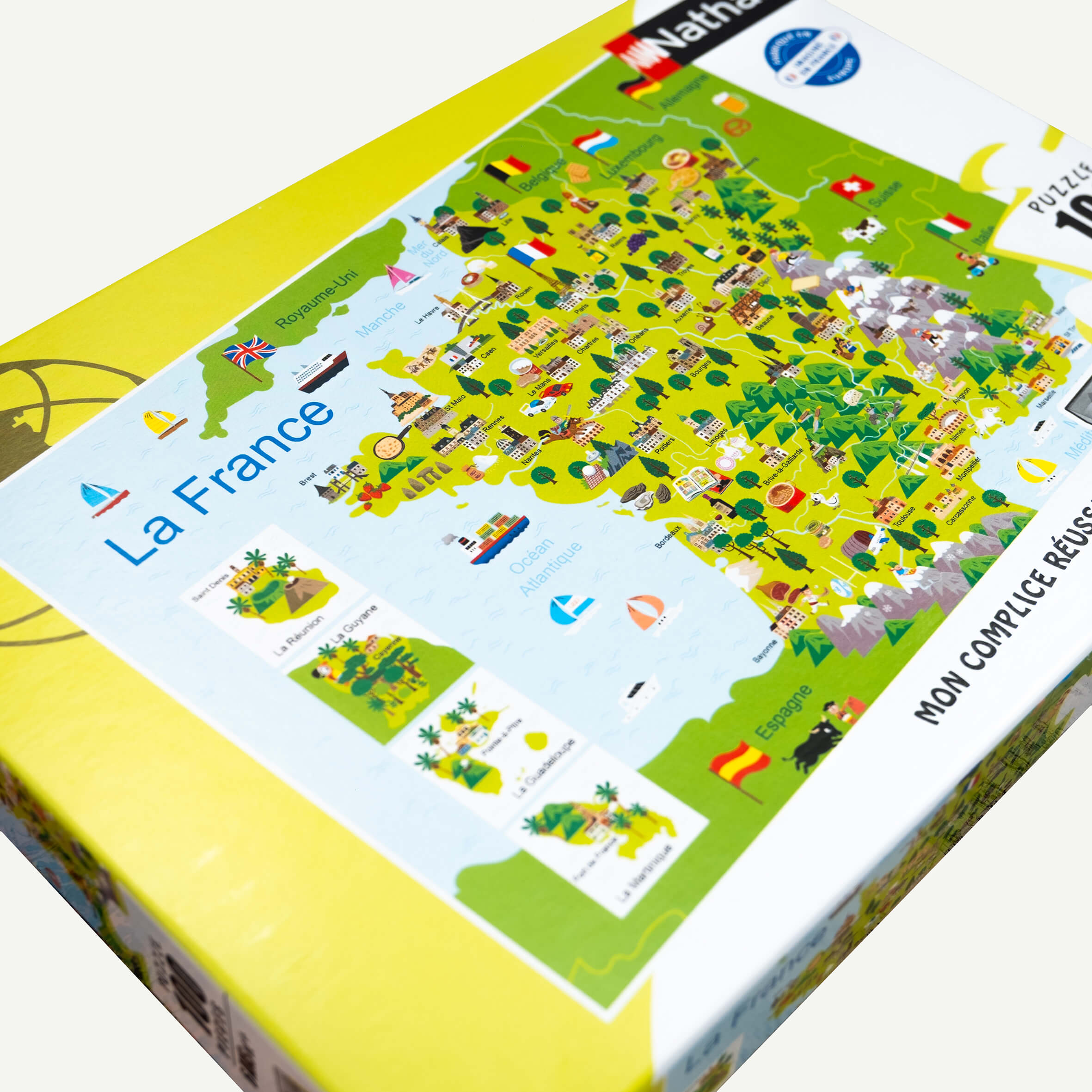 Offrez le puzzle « Carte de France » de Nathan-Ravensburger — une carte illustrée à reconstituer en 100 pièces, idéale pour initier les enfants dès 6 ans à la géographie et à la découverte de leur pays.