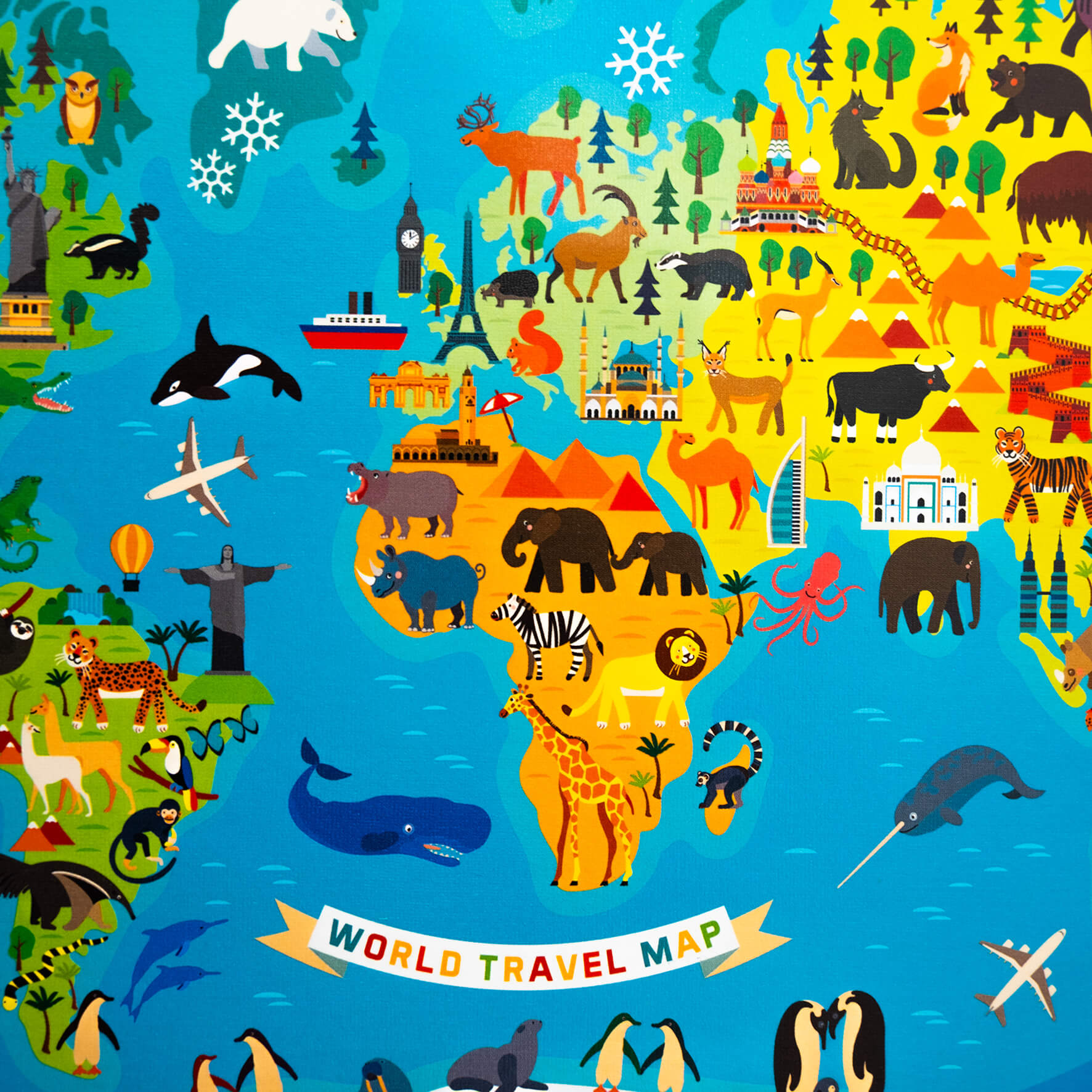 Grâce à ce puzzle, vos enfants peuvent explorer continents, océans et zones géographiques tout en découvrant des animaux marquants de chaque région — un excellent moyen de développer curiosité, connaissances en géographie et sens de l’observation.
