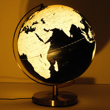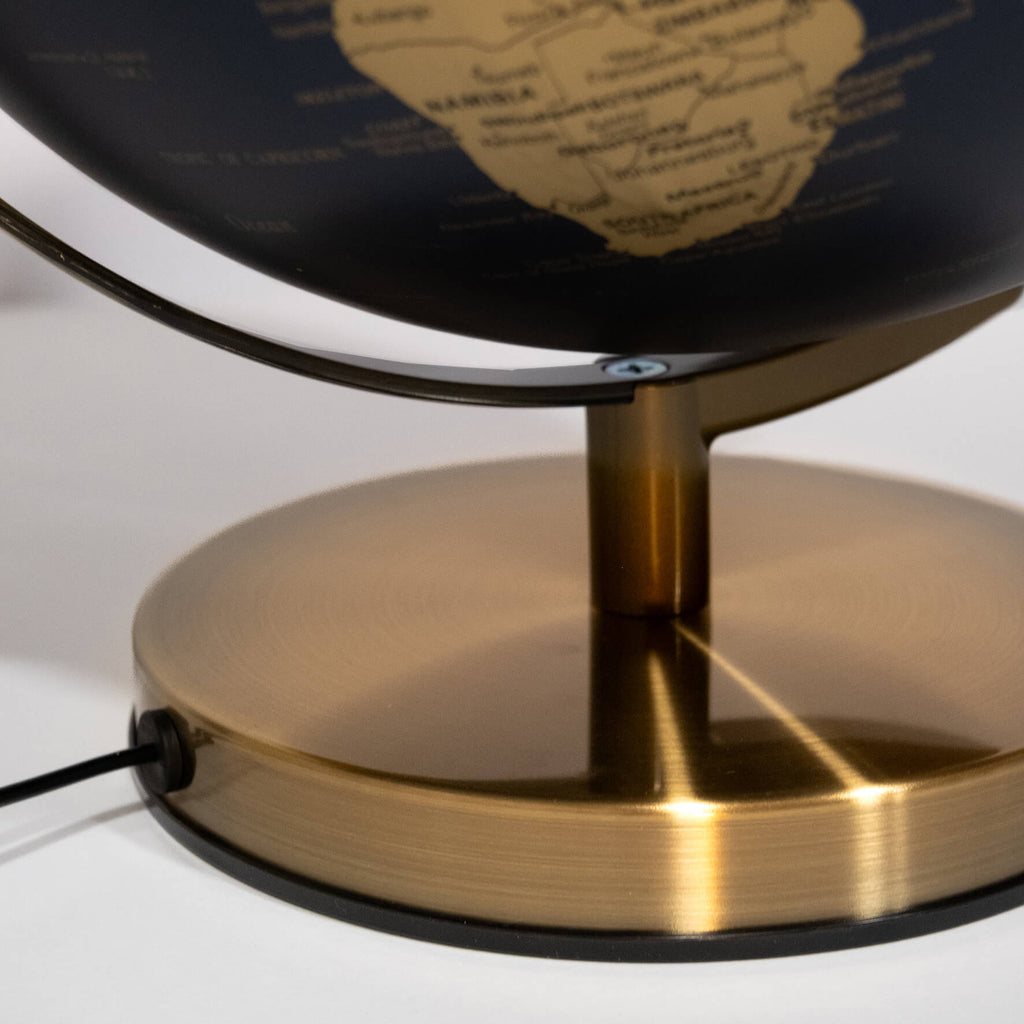 30 cm - base en métal chromé aspect brossé - éclairage intégré et réglable - axe mobile - relief cartographique - bleu et or
