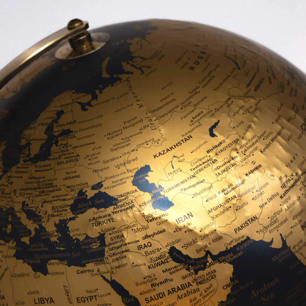 Découvrez le monde sous un nouveau jour. Ce globe terrestre, avec sa carte en relief et ses finitions dorées, est bien plus qu'un simple objet de décoration. Son bleu profond évoque les océans, tandis que l'or souligne les continents avec élégance. Ce globe lumineux est un véritable bijou géographique qui sublimera votre intérieur et vous transportera aux quatre coins du globe.