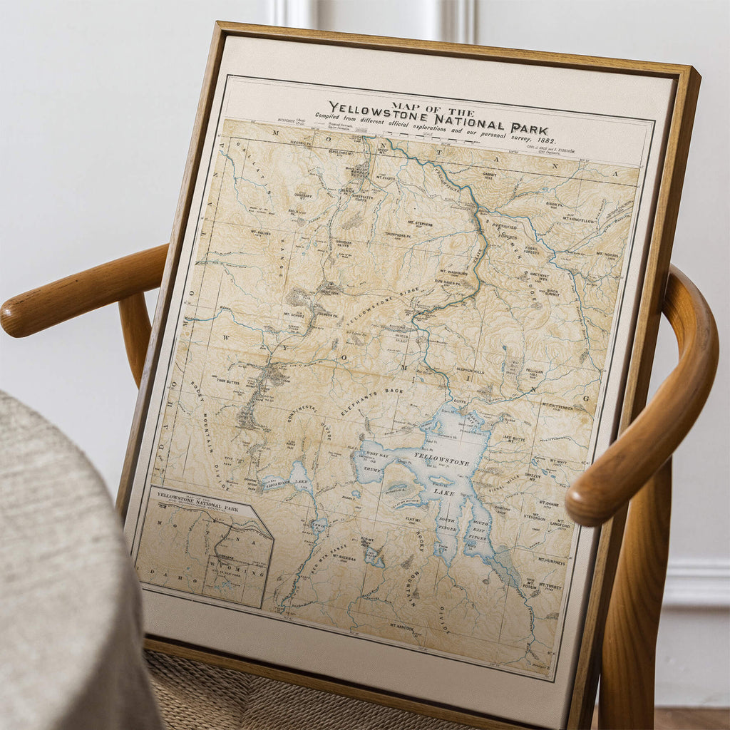 Cette carte topographique du Parc National de Yellowstone, datée de 1882, est un document historique fondamental qui témoigne des premiers efforts officiels pour cartographier cette région mythique, dix ans seulement après sa désignation comme premier parc national au monde.
