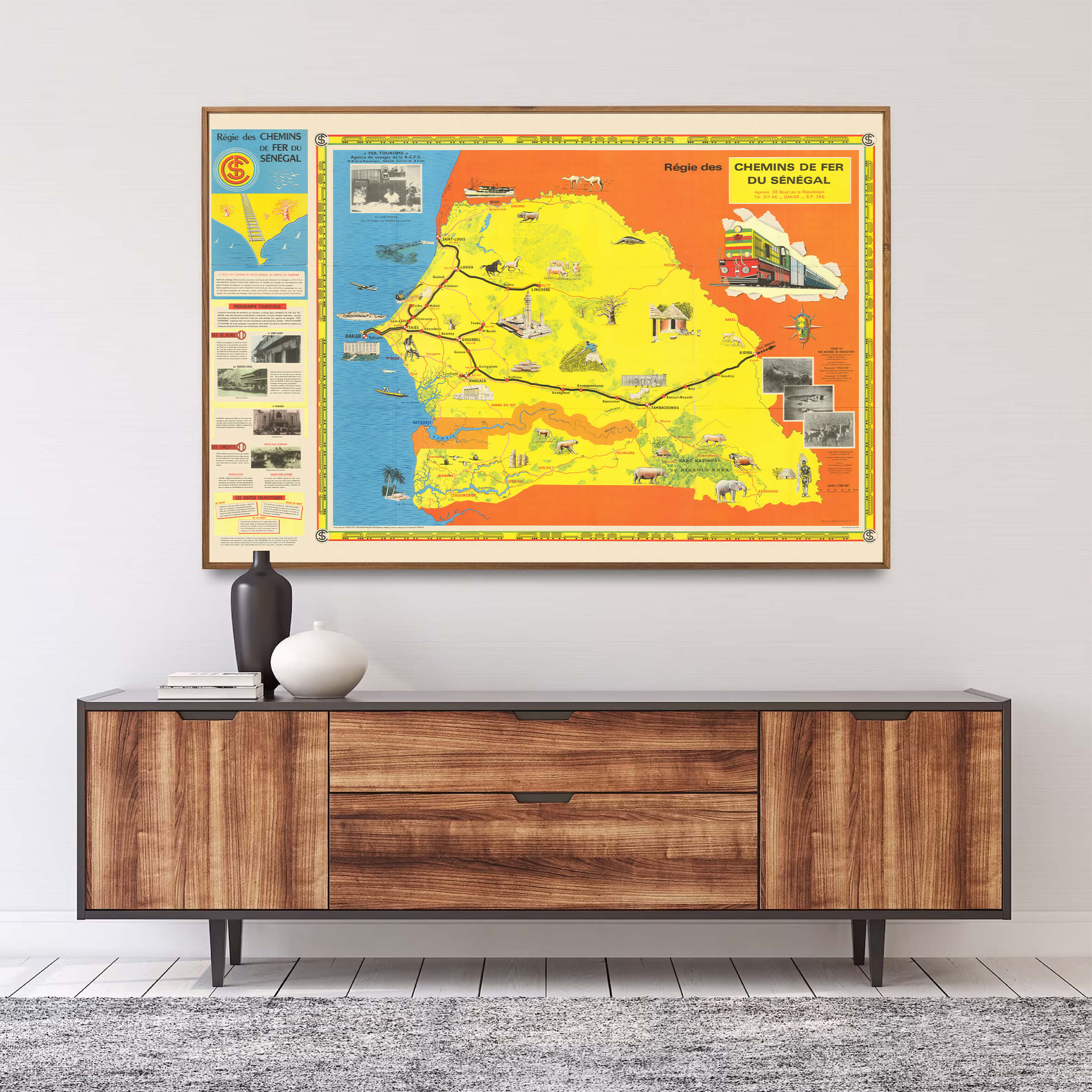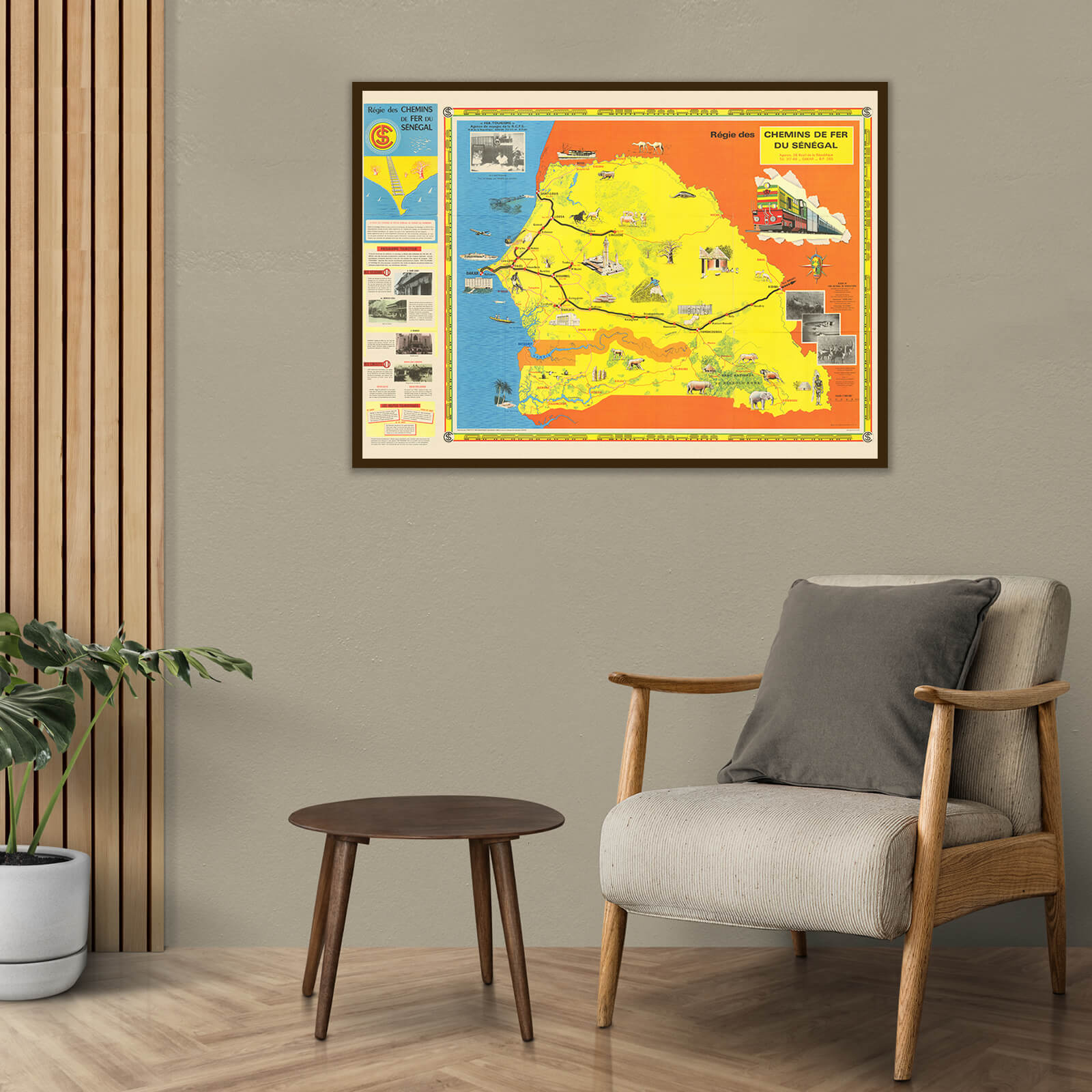 Plongez dans l'histoire du Sénégal avec cette carte ferroviaire vintage, véritable témoin d'une époque charnière.