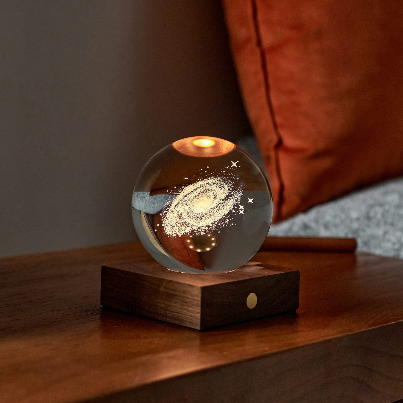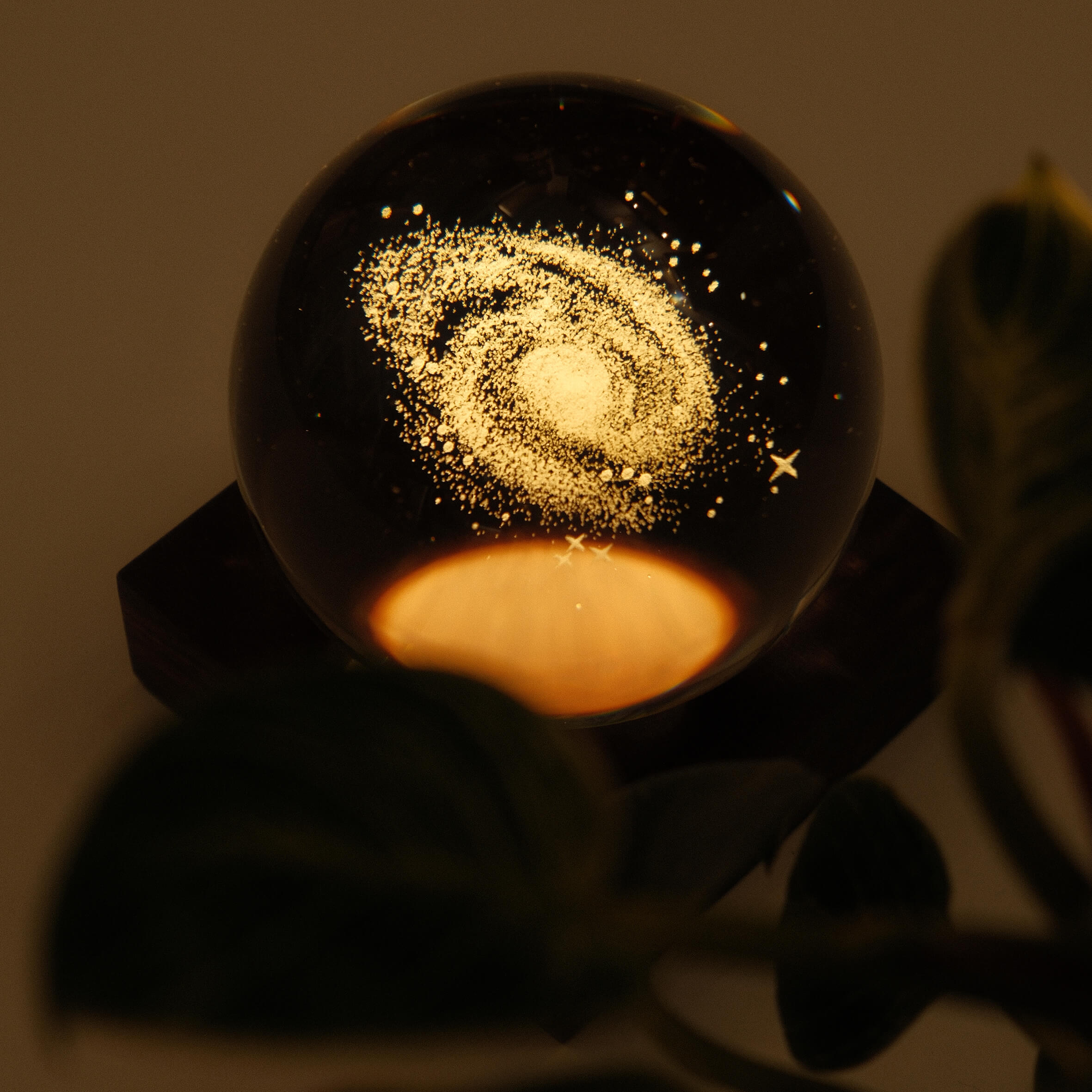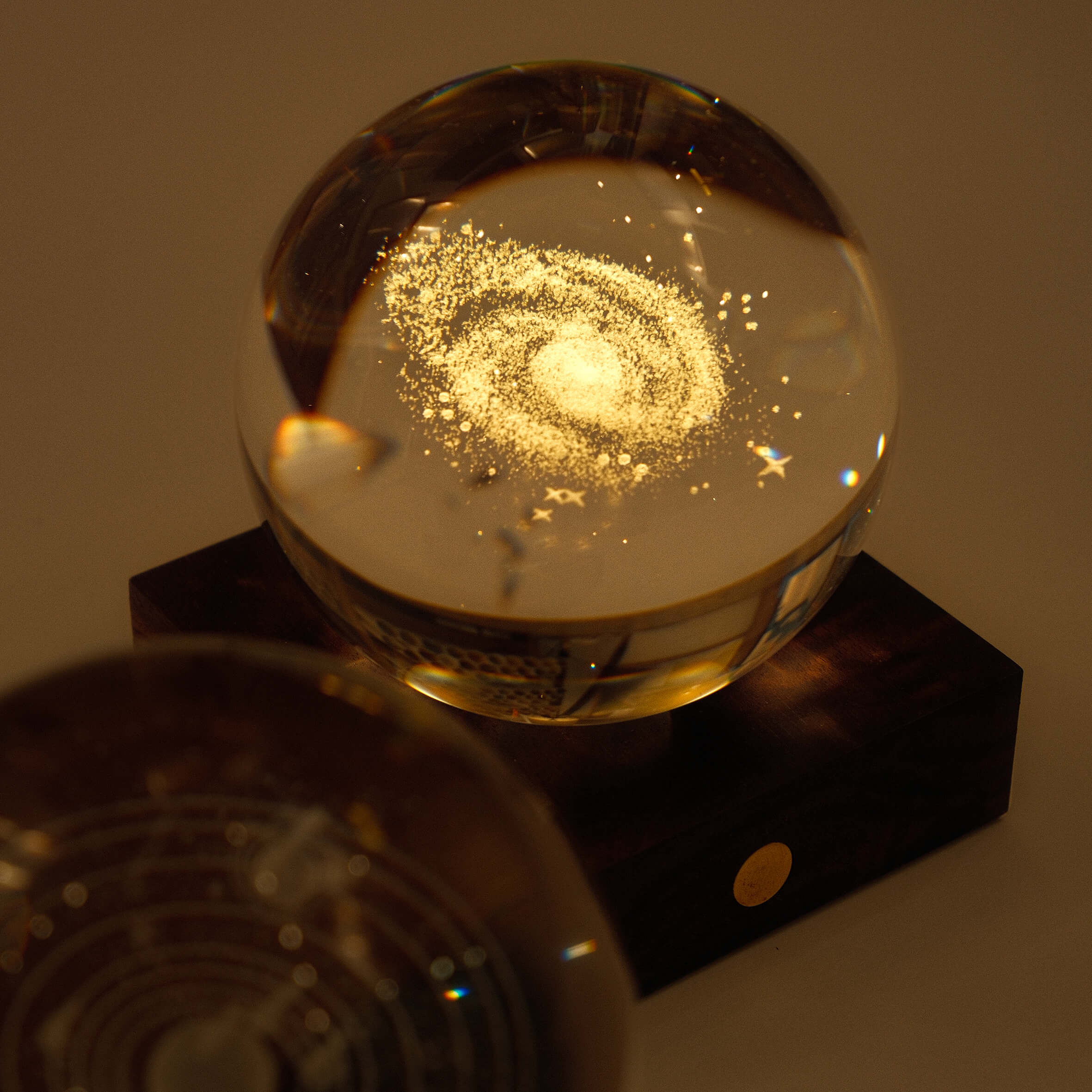 Plongez dans l’immensité du cosmos avec ce magnifique globe en cristal représentant une galaxie tourbillonnante. Chaque détail, finement gravé au laser en trois dimensions, révèle la profondeur et la beauté de l’univers. Posé sur son socle lumineux en bois, il diffuse une lueur envoûtante. Un objet poétique et fascinant, idéal pour les passionnés d’astronomie, les rêveurs et les amateurs de décoration élégante et contemporaine.