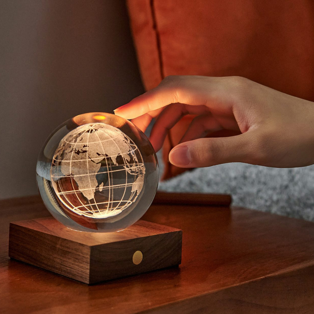 Touch control - Gravure 3D - Chargeur USB - Socle bois - Boule en cristal