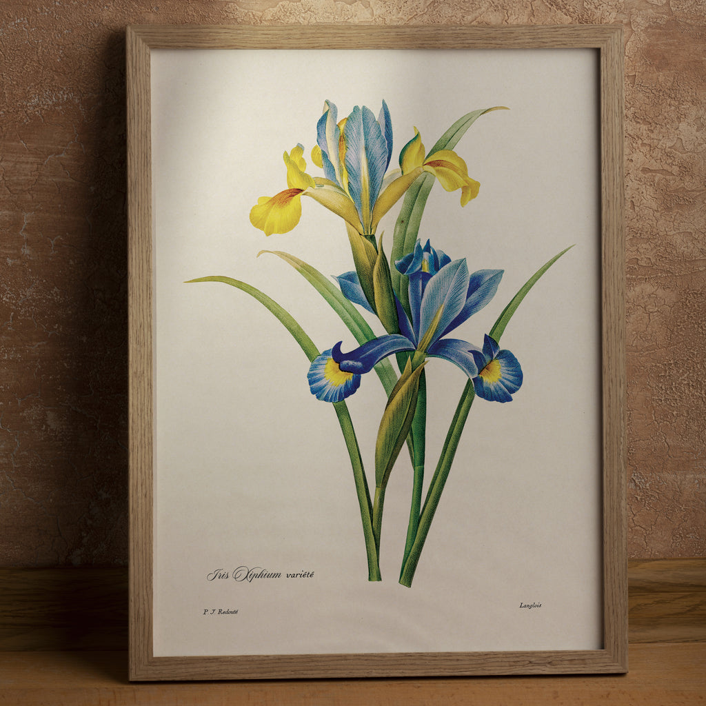 Très belle réédition d'une planche botanique représentant d'un Iris, réalisée par Pierre-Joseph Redouté issue de l'ouvrage "Choix des plus belles fleurs et des plus beaux fruits" édité en 1823.